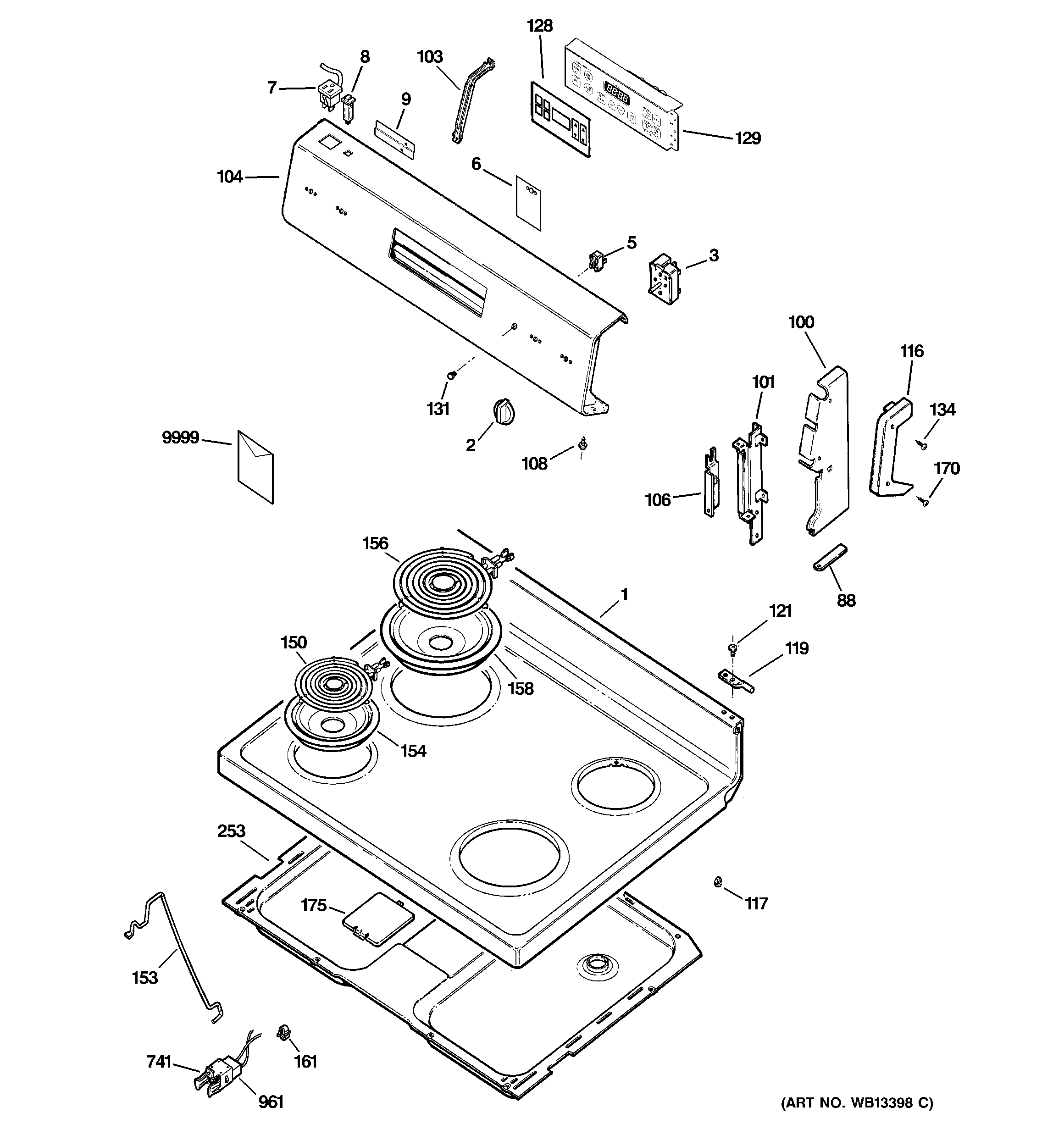 RCB757WJ3WW CONTROL PANEL & COOKTOP