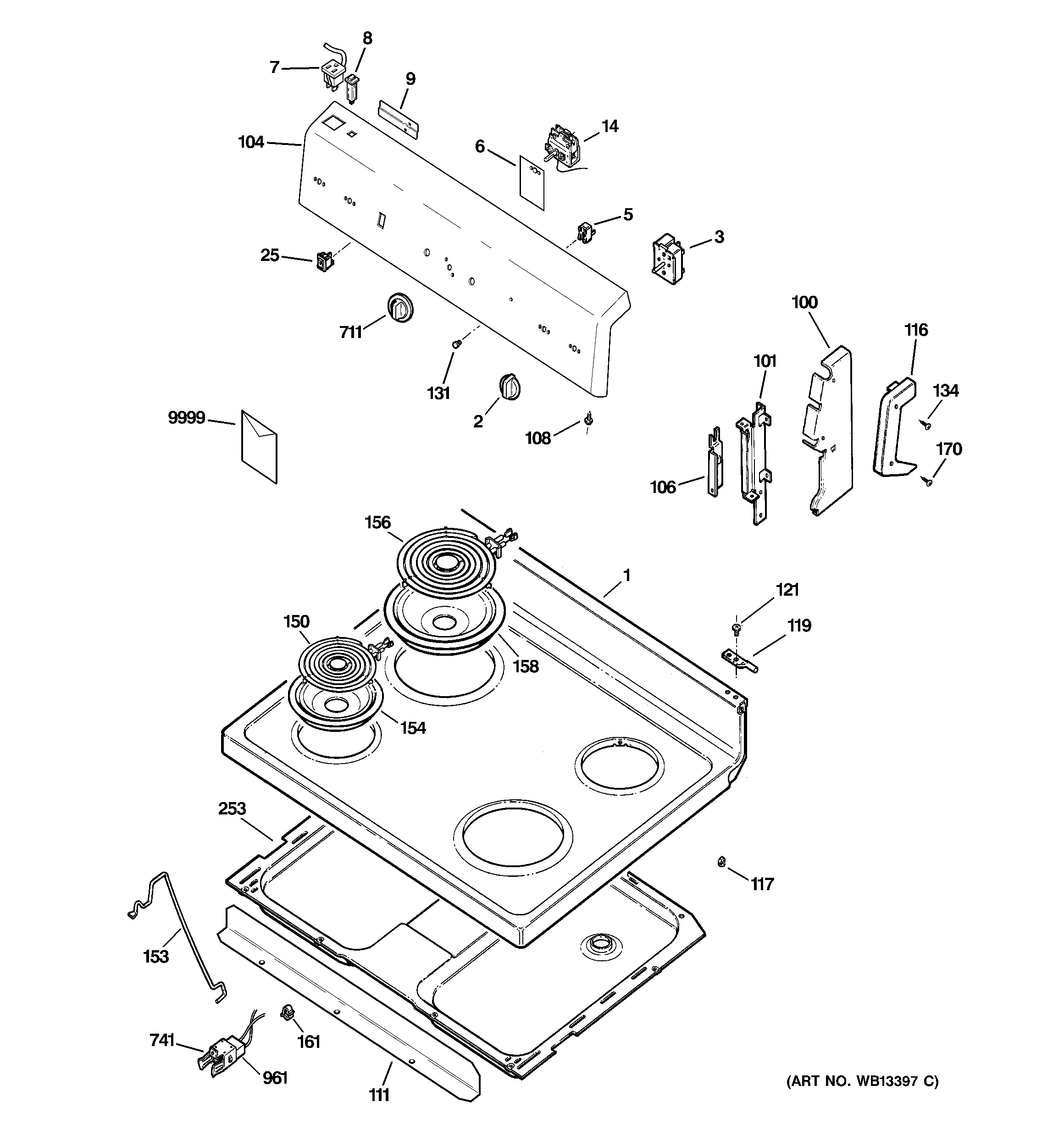 RCBS525J1WW CONTROL PANEL & COOKTOP