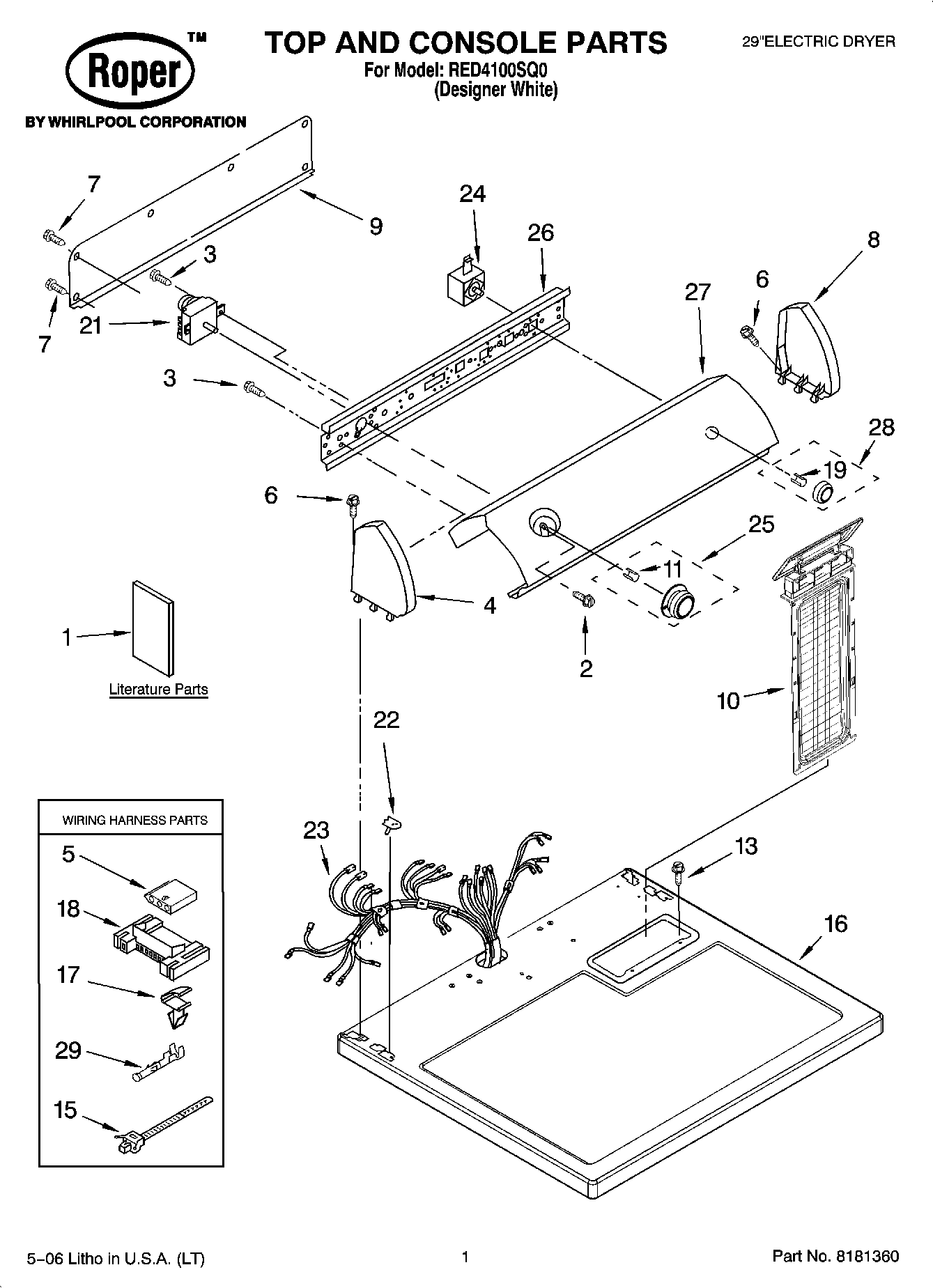 RED4100SQ0 01 – TOP AND CONSOLE PARTS