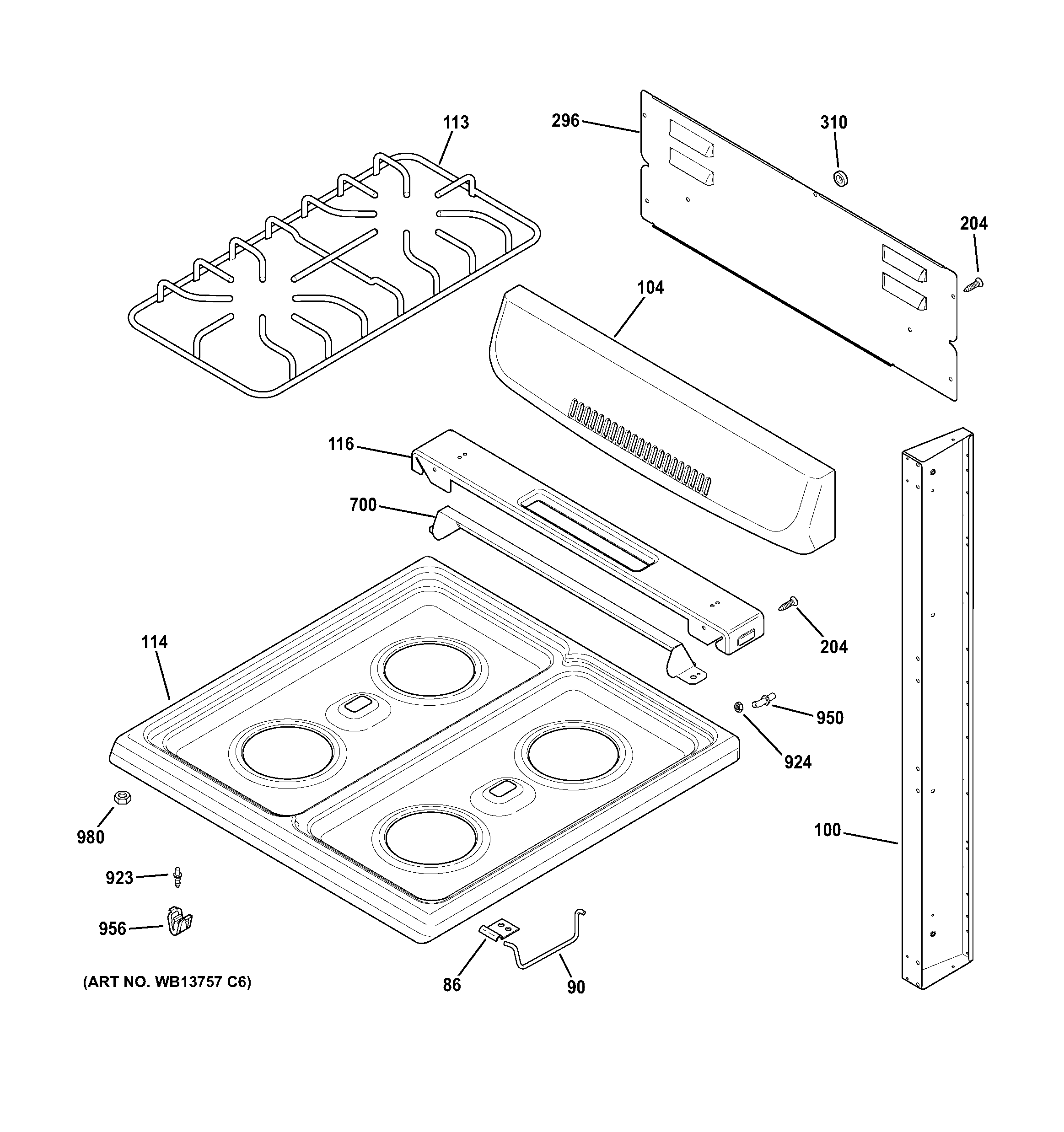 RGA724PK4WH CONTROL PANEL & COOKTOP
