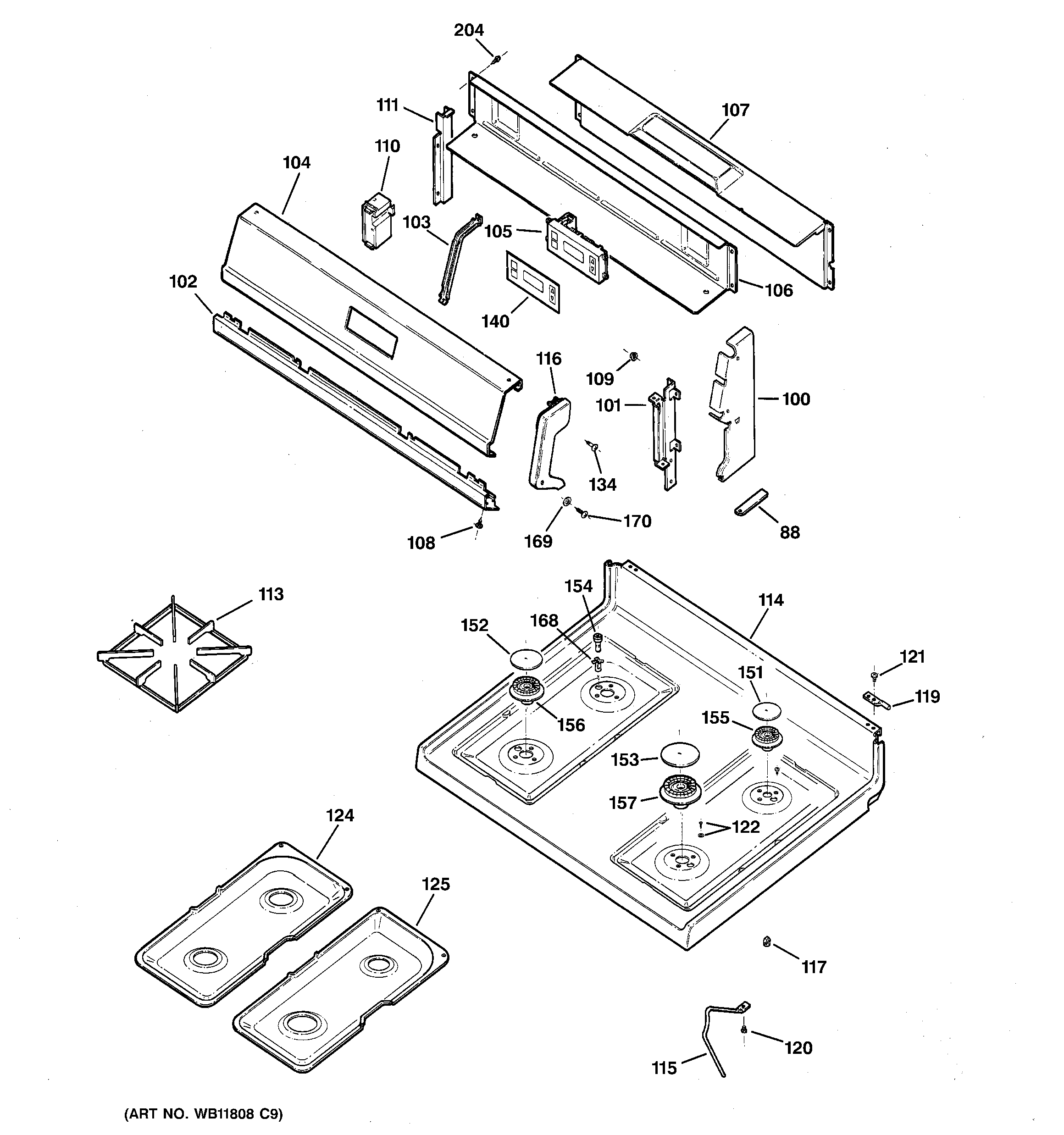 RGB533WEA5WW CONTROL PANEL & COOKTOP