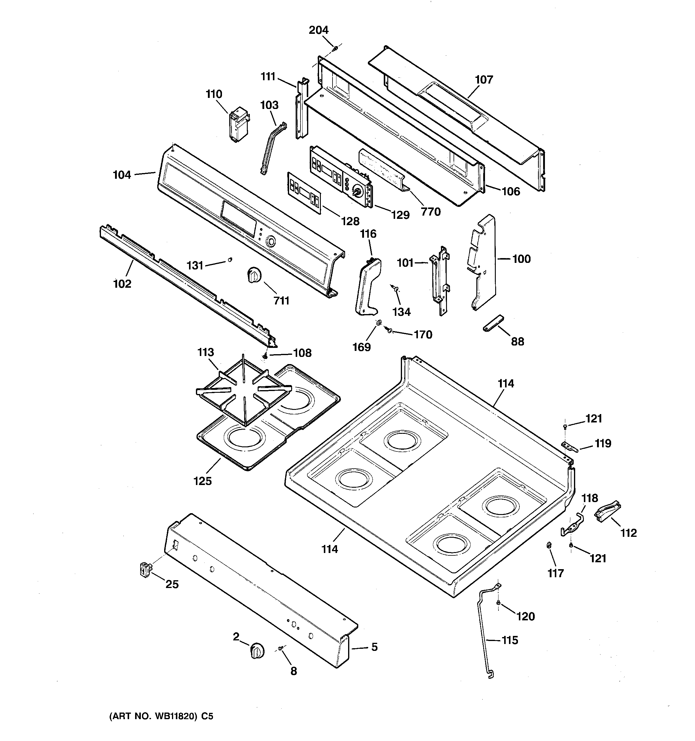 RGB744WEA1WW CONTROL PANEL & COOKTOP