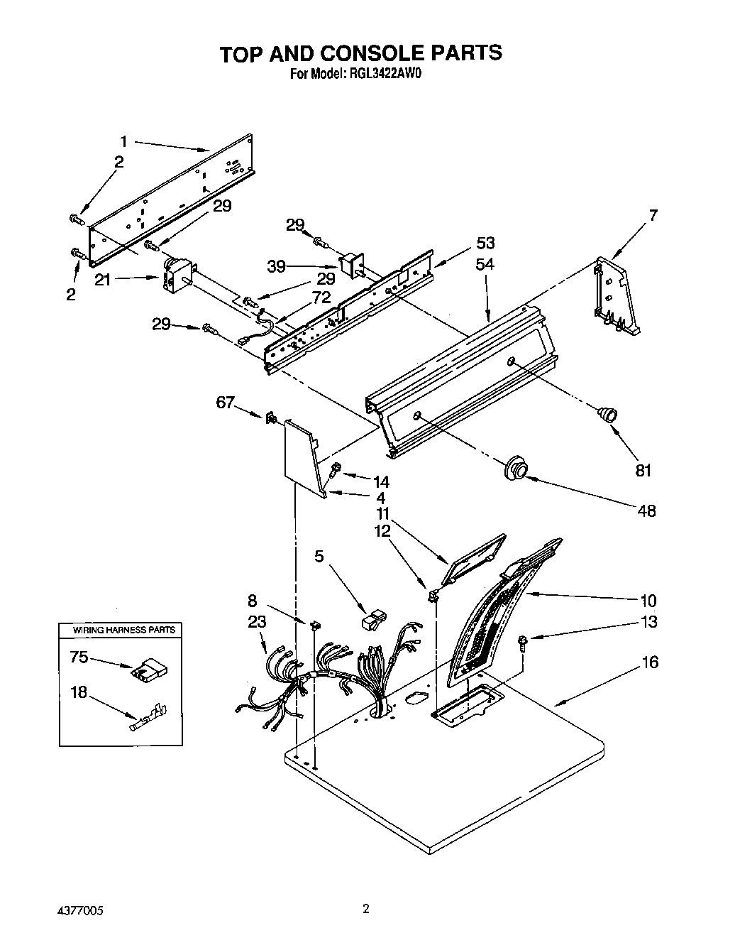 RGL3422AL0 02 – TOP AND CONSOLE, LIT/OPTIONAL