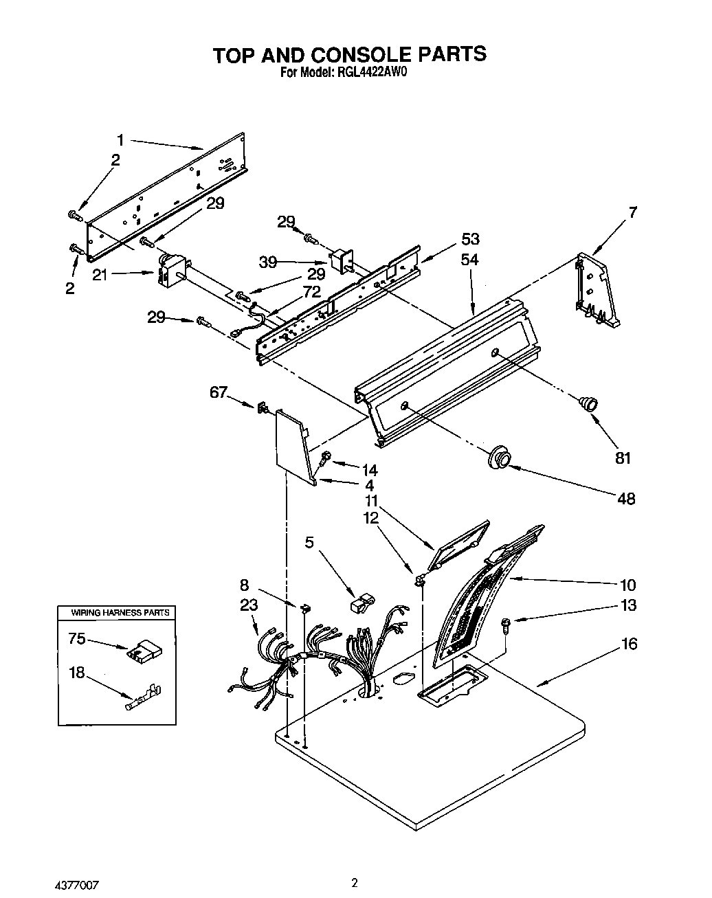 RGL4422AL0 02 – TOP AND CONSOLE, LIT/OPTIONAL