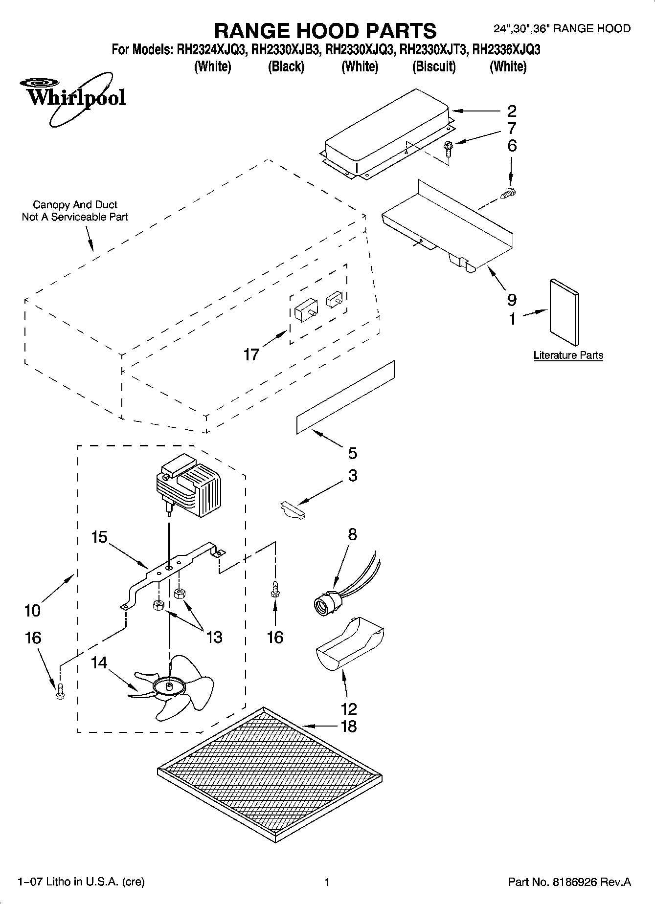 RH2330XJQ3 01 – RANGE HOOD PARTS