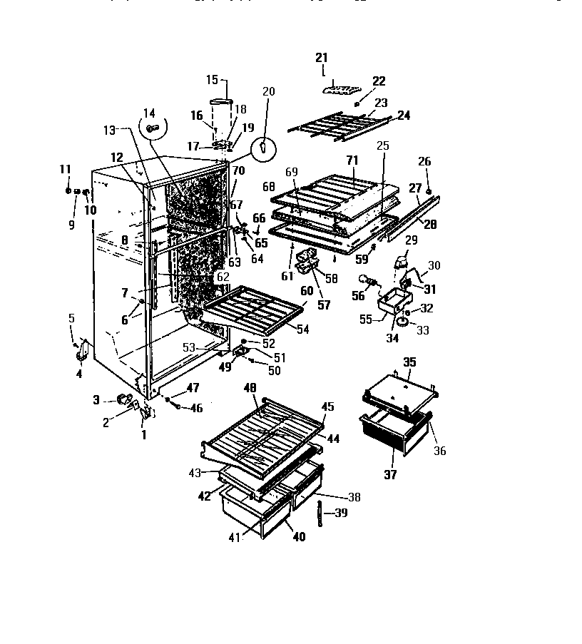 RT216JCF0 03 – CABINET, SHELVES, DIVIDER, FAN ASSE