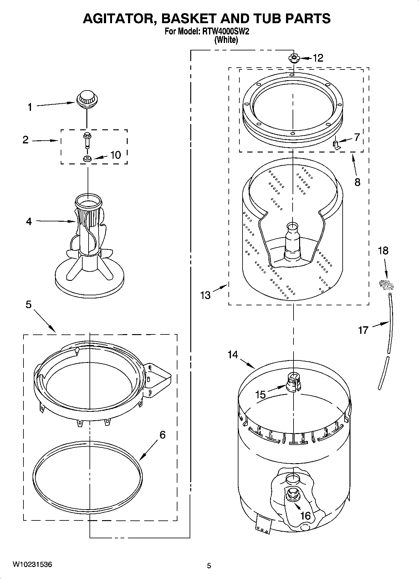 RTW4000SW2 03 – AGITATOR, BASKET AND TUB PARTS