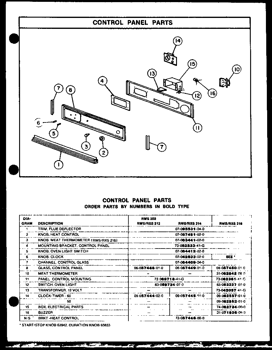 RWS212 01 – CONTROL PANEL PARTS