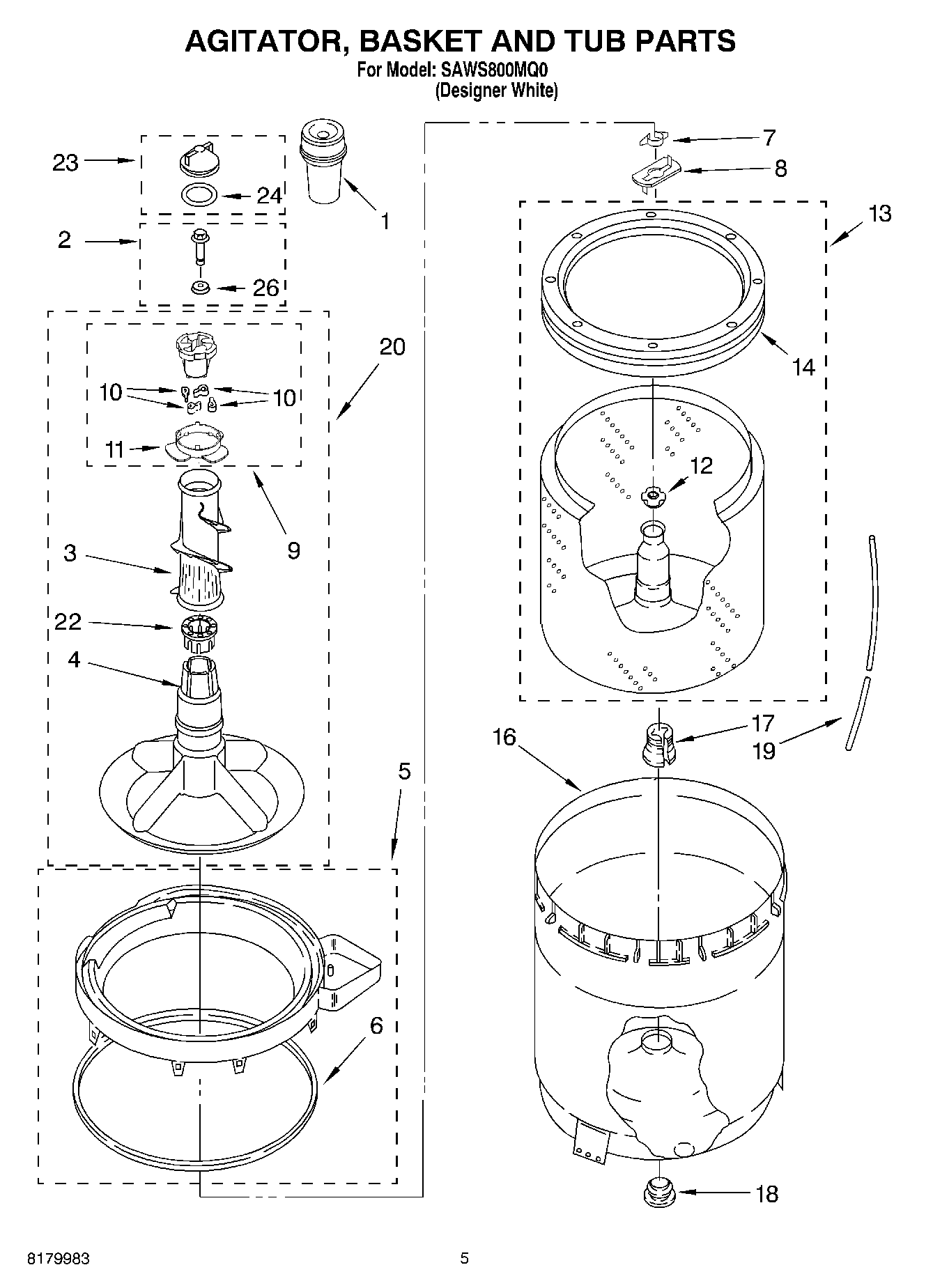 SAWS800MQ0 03 – AGITATOR, BASKET AND TUB PARTS