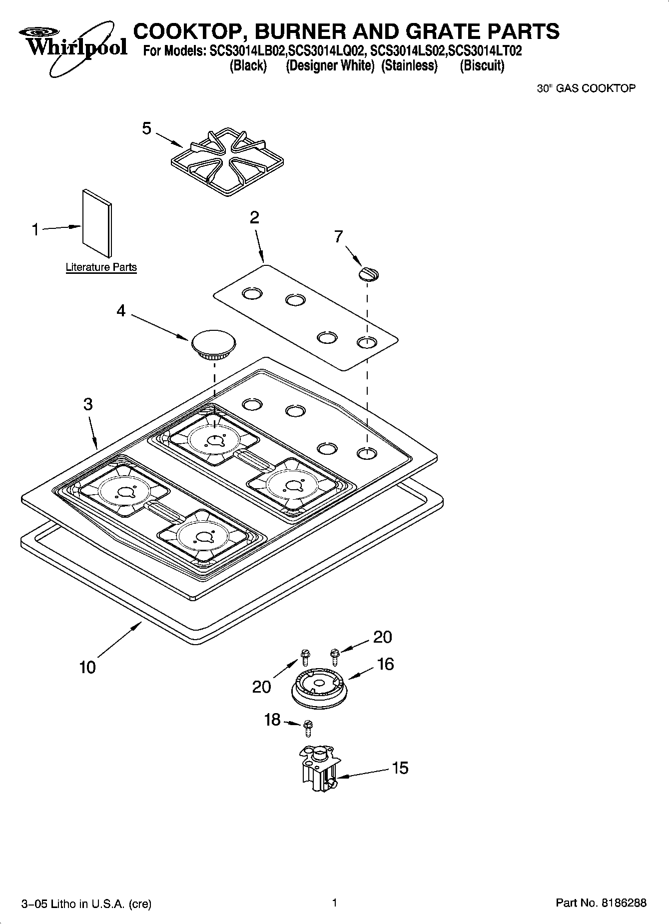 SCS3014LB02 01 – COOKTOP, BURNER AND GRATE PARTS