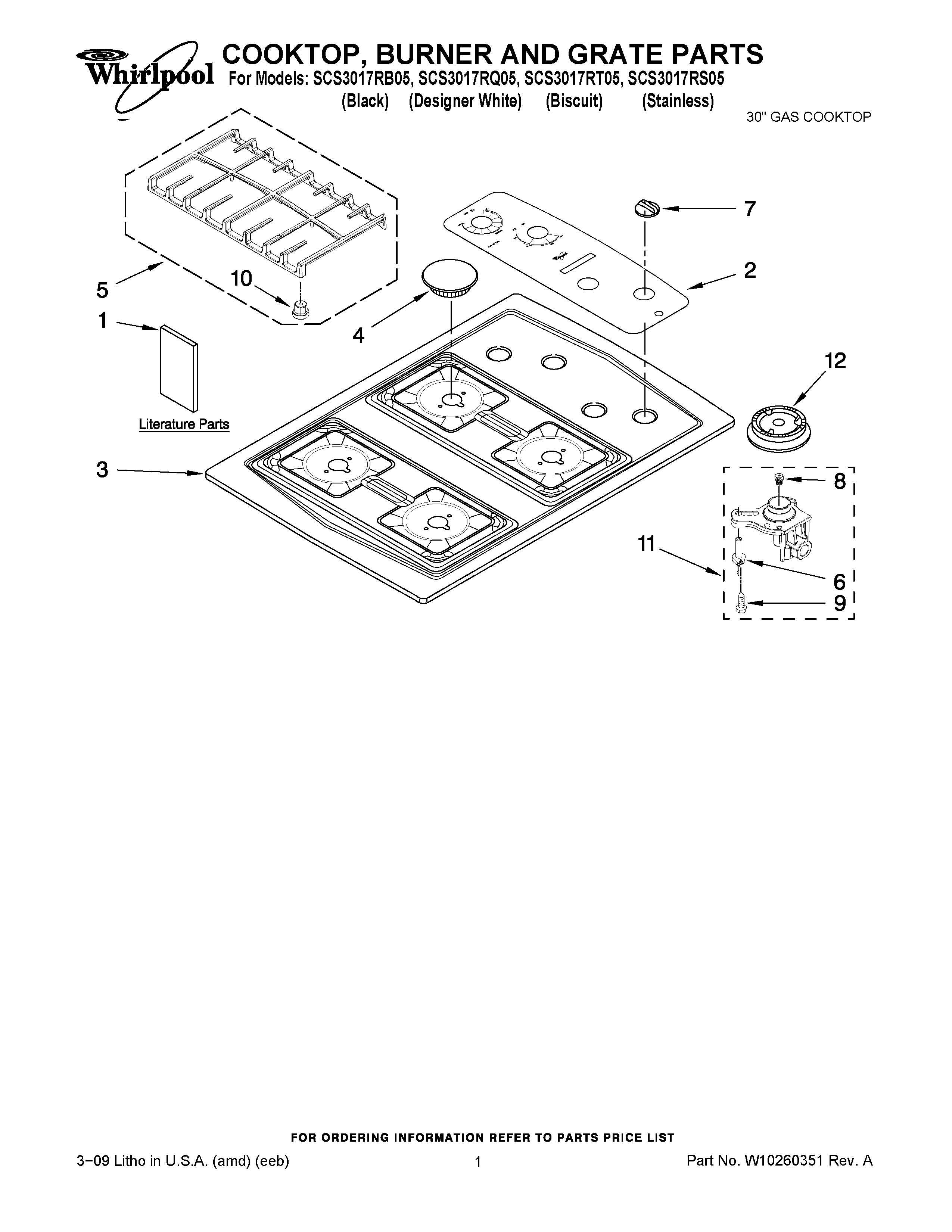 SCS3017RB05 01 – COOKTOP, BURNER AND GRATE PARTS