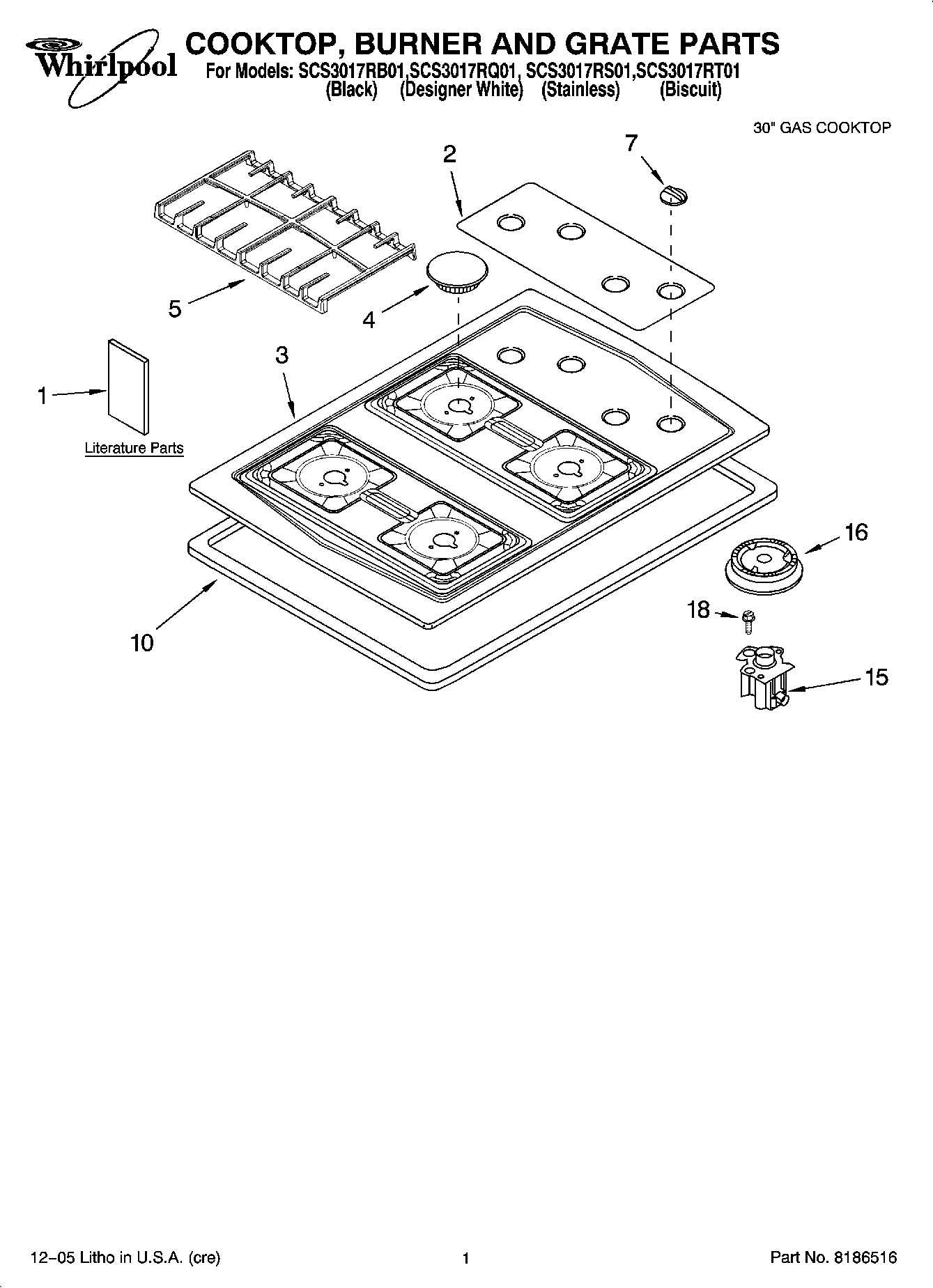 SCS3017RT01 01 – COOKTOP, BURNER AND GRATE PARTS