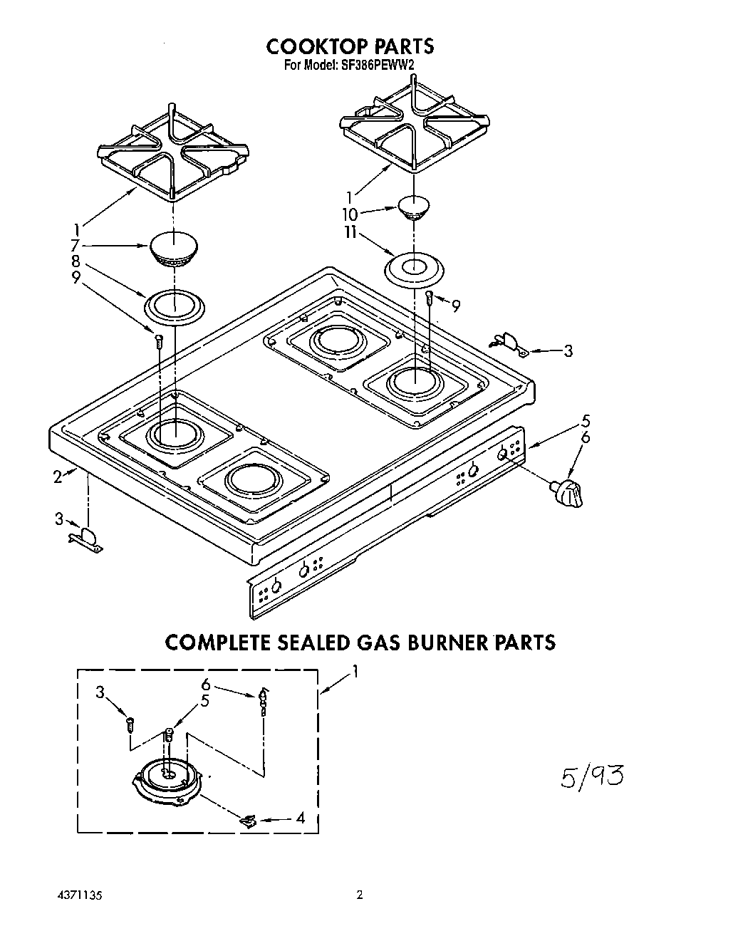 SF386PEWW2 01 – COOKTOP, COMPLETE SEALED GAS BURNER
