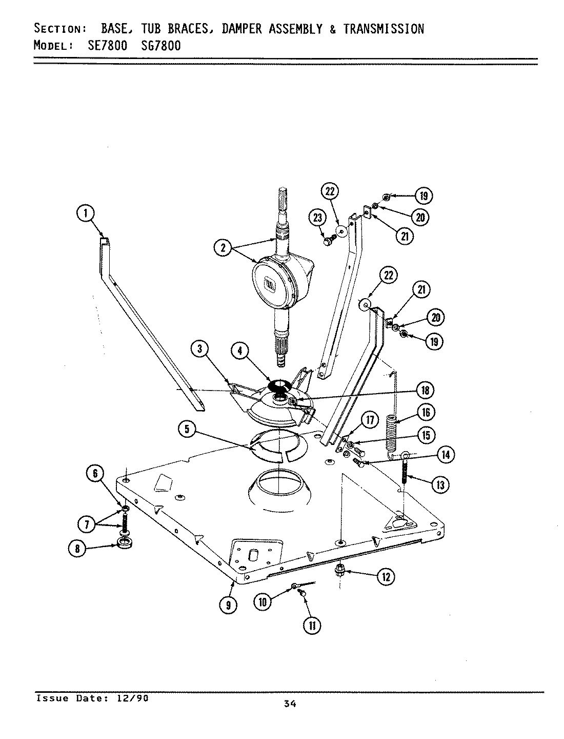 SG7800 01 – BASE, TUB BRACES, DAMPER ASSY. & TRANS.