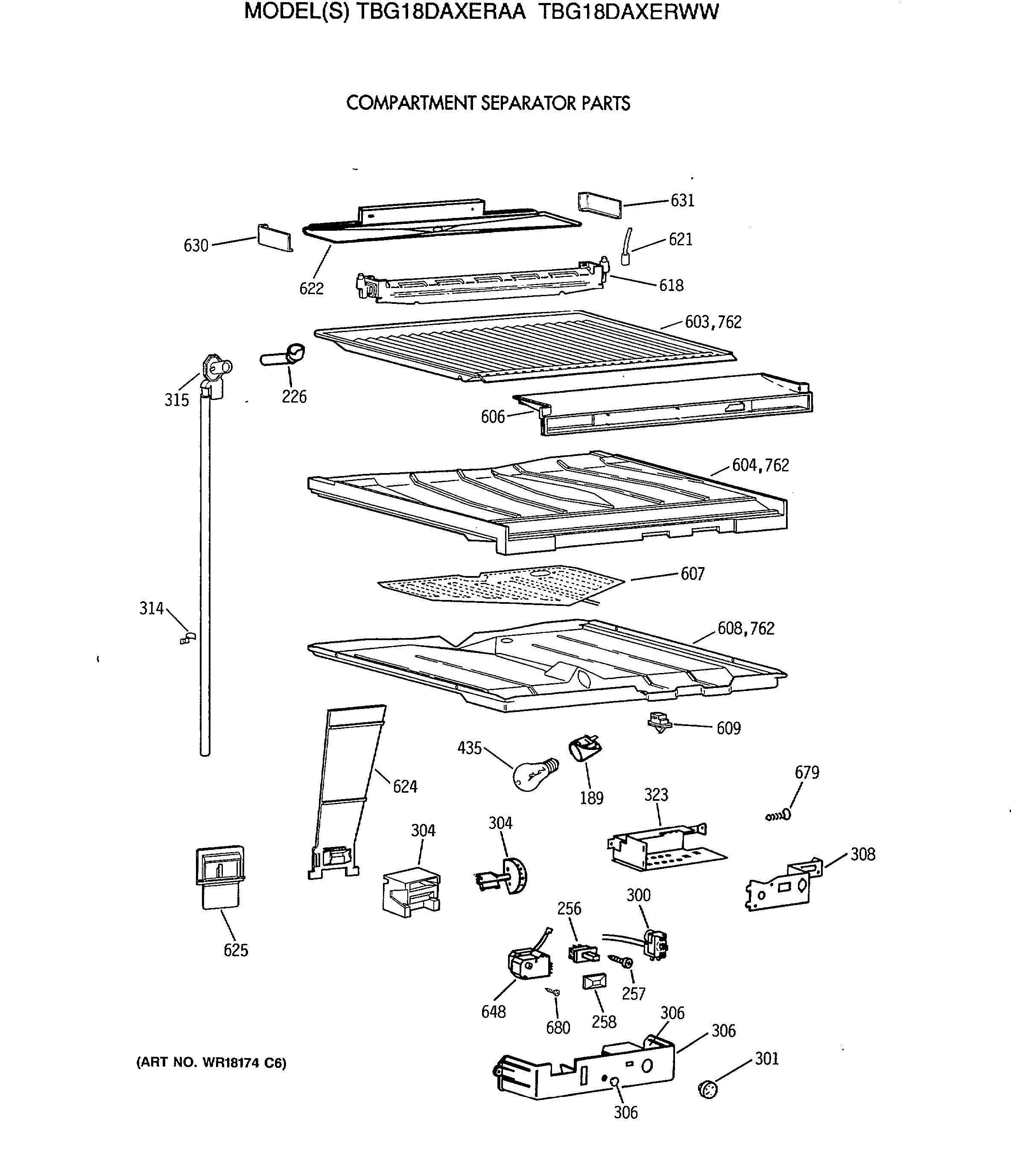 TBG18DAXERWW COMPARTMENT SEPARATOR PARTS
