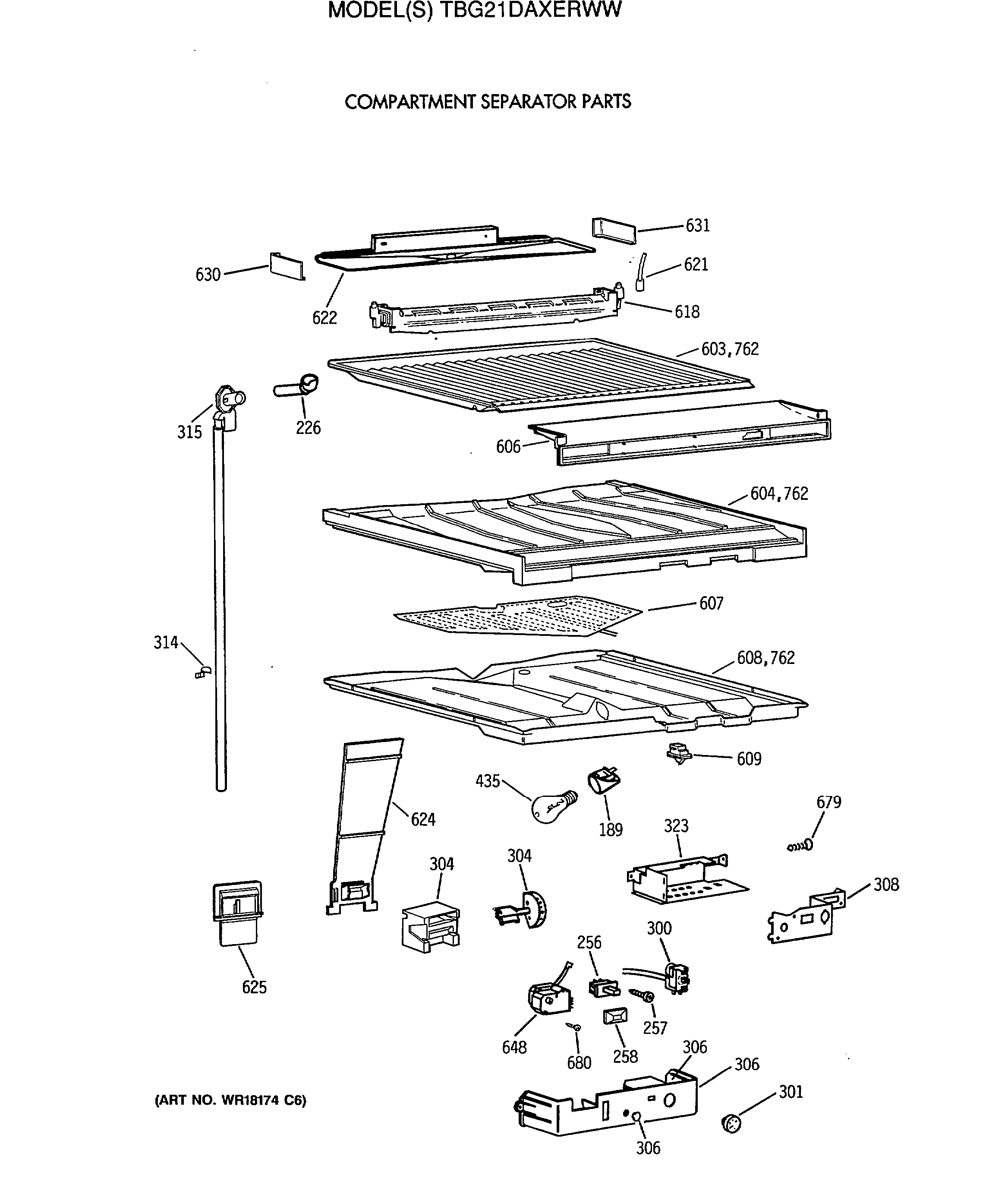TBG21DAXERWW COMPARTMENT SEPARATOR PARTS