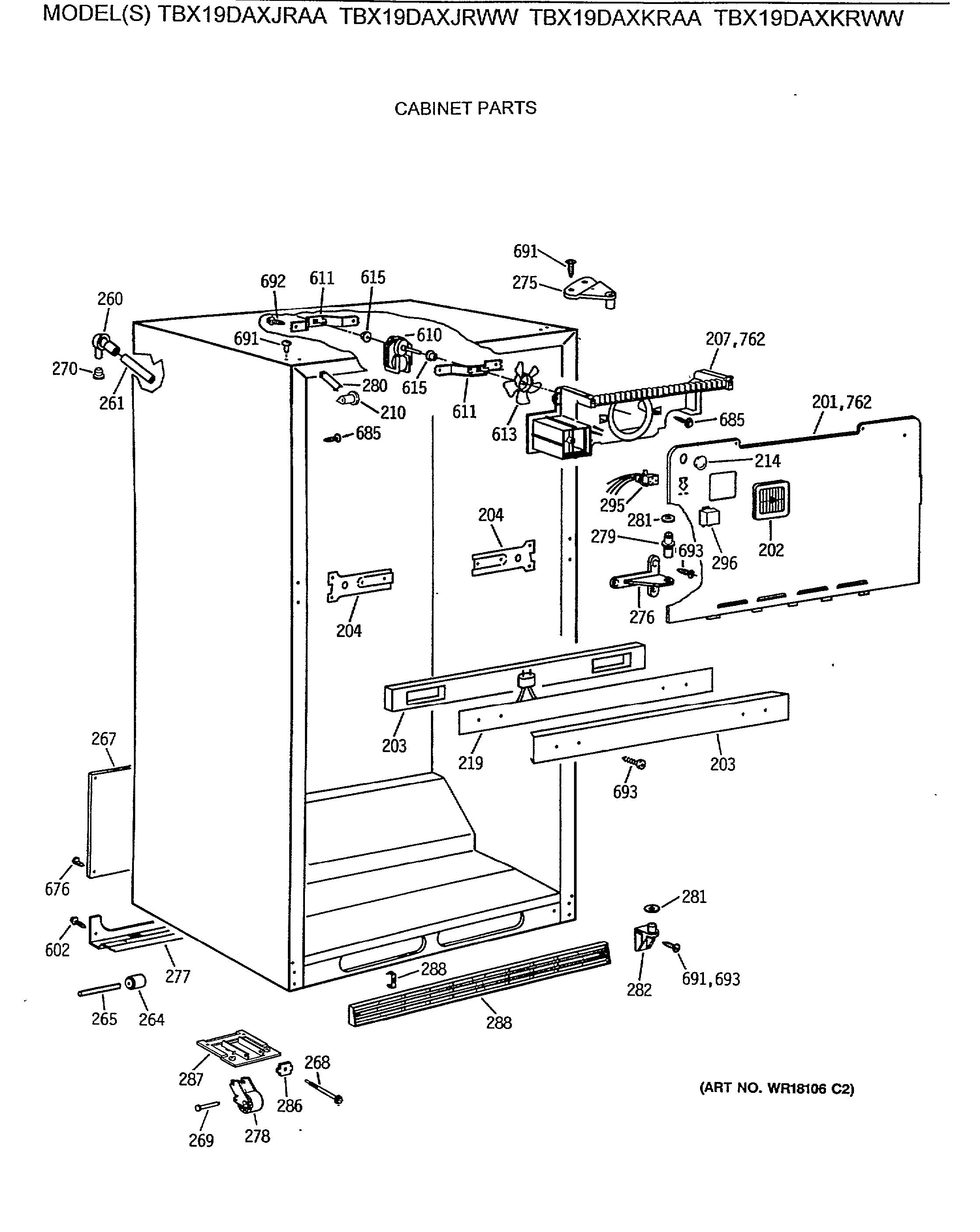 TBX19DAXKRWW CABINET PARTS