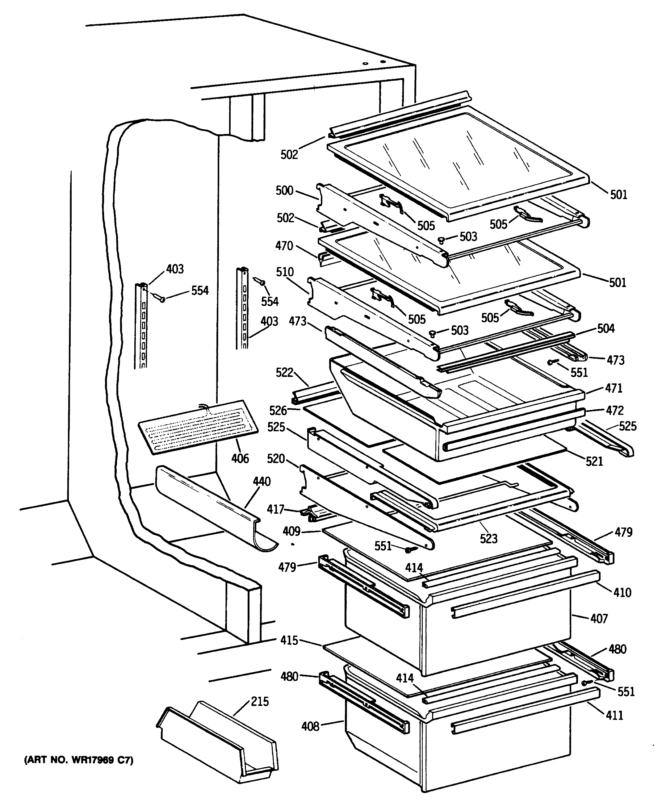 WR72X207 GE Refrigerator Left Hand Slide Assembly