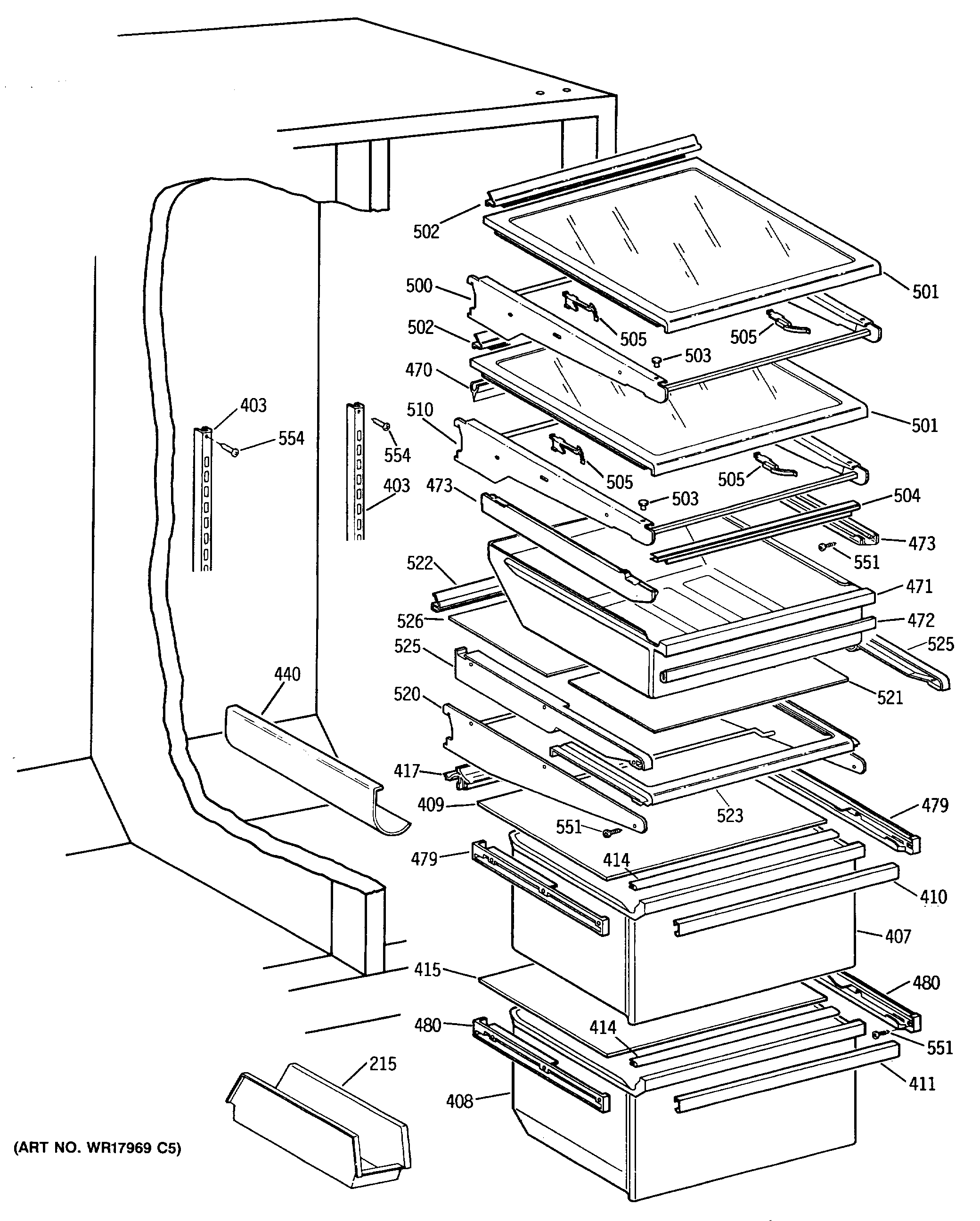 WR72X207 GE Refrigerator Left Hand Slide Assembly