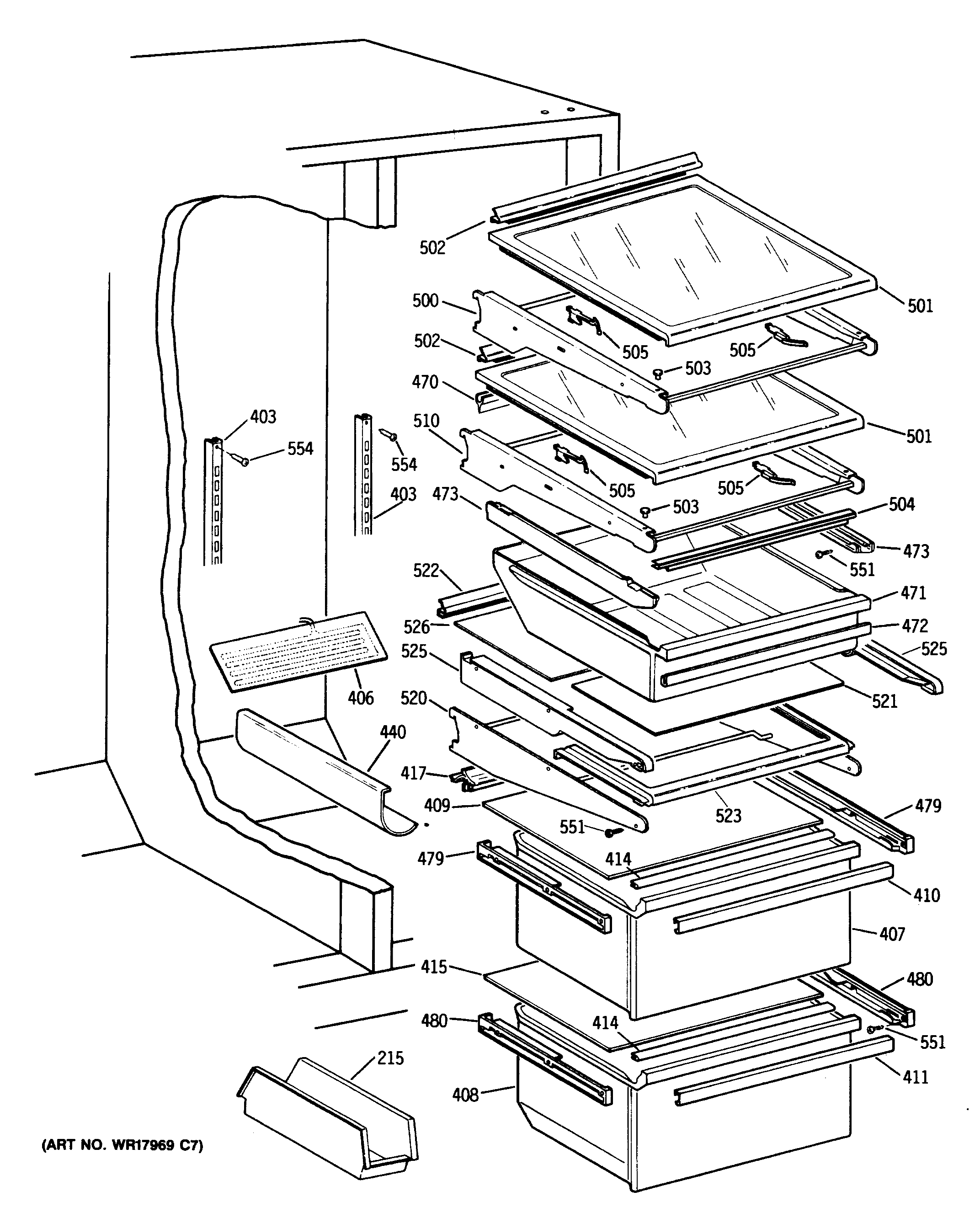 WR72X207 GE Refrigerator Left Hand Slide Assembly