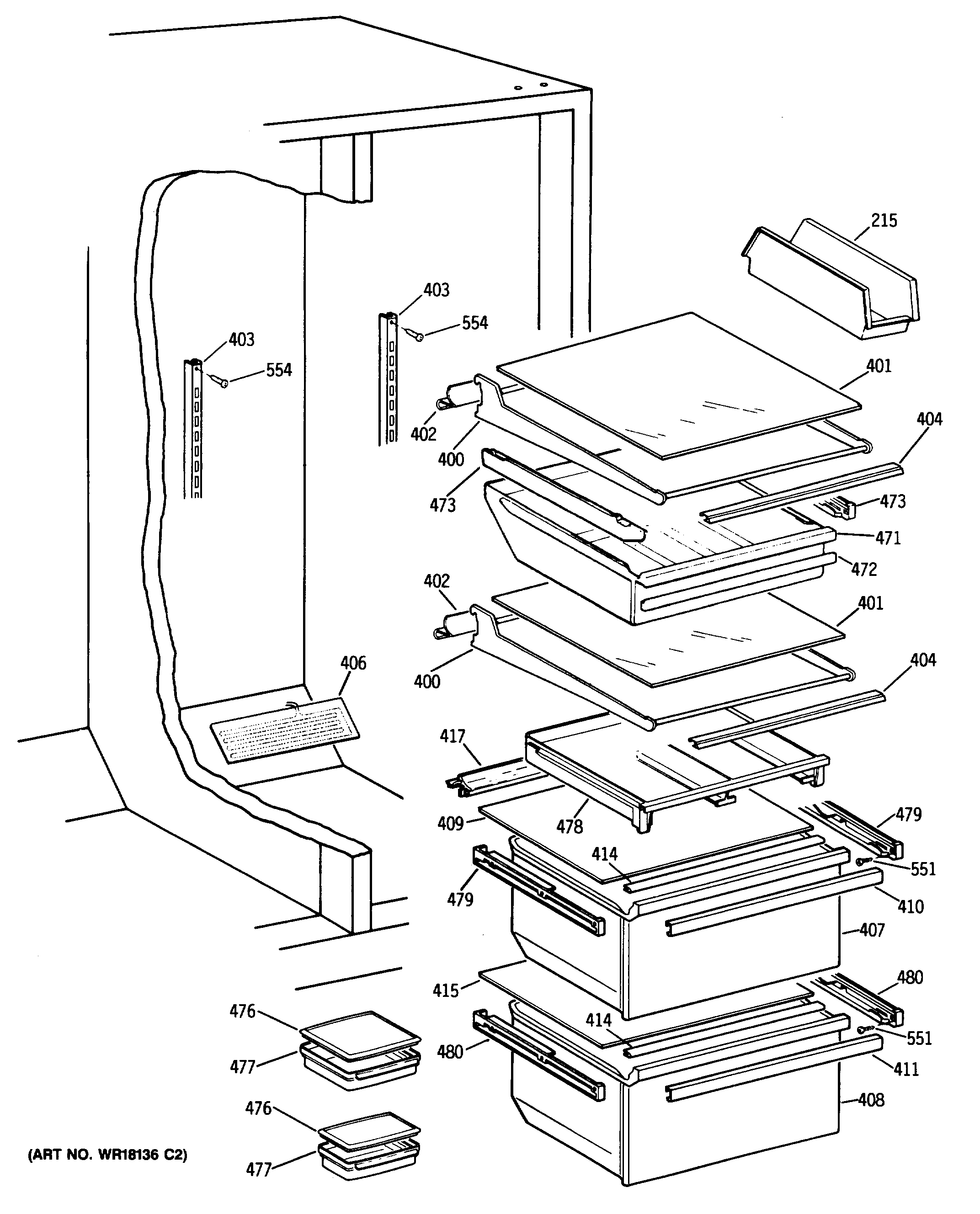 WR72X207 GE Refrigerator Left Hand Slide Assembly