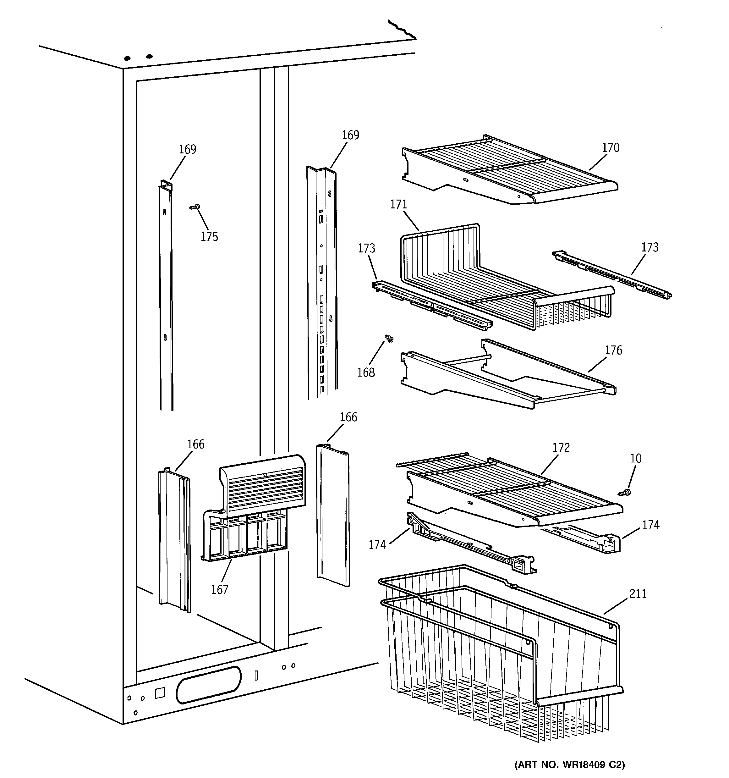 PCF23RGWABB FREEZER SHELVES