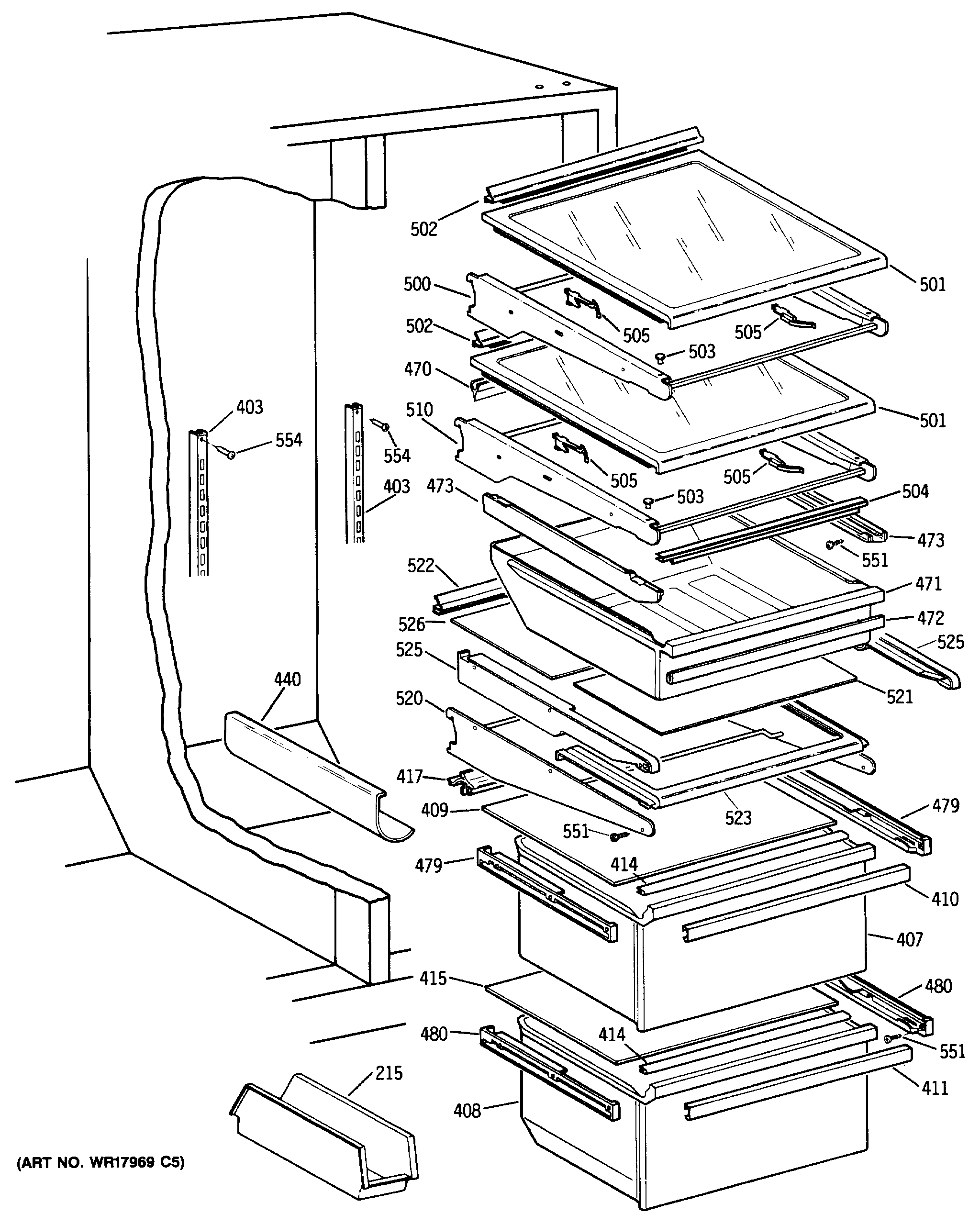 WR72X207 GE Refrigerator Left Hand Slide Assembly
