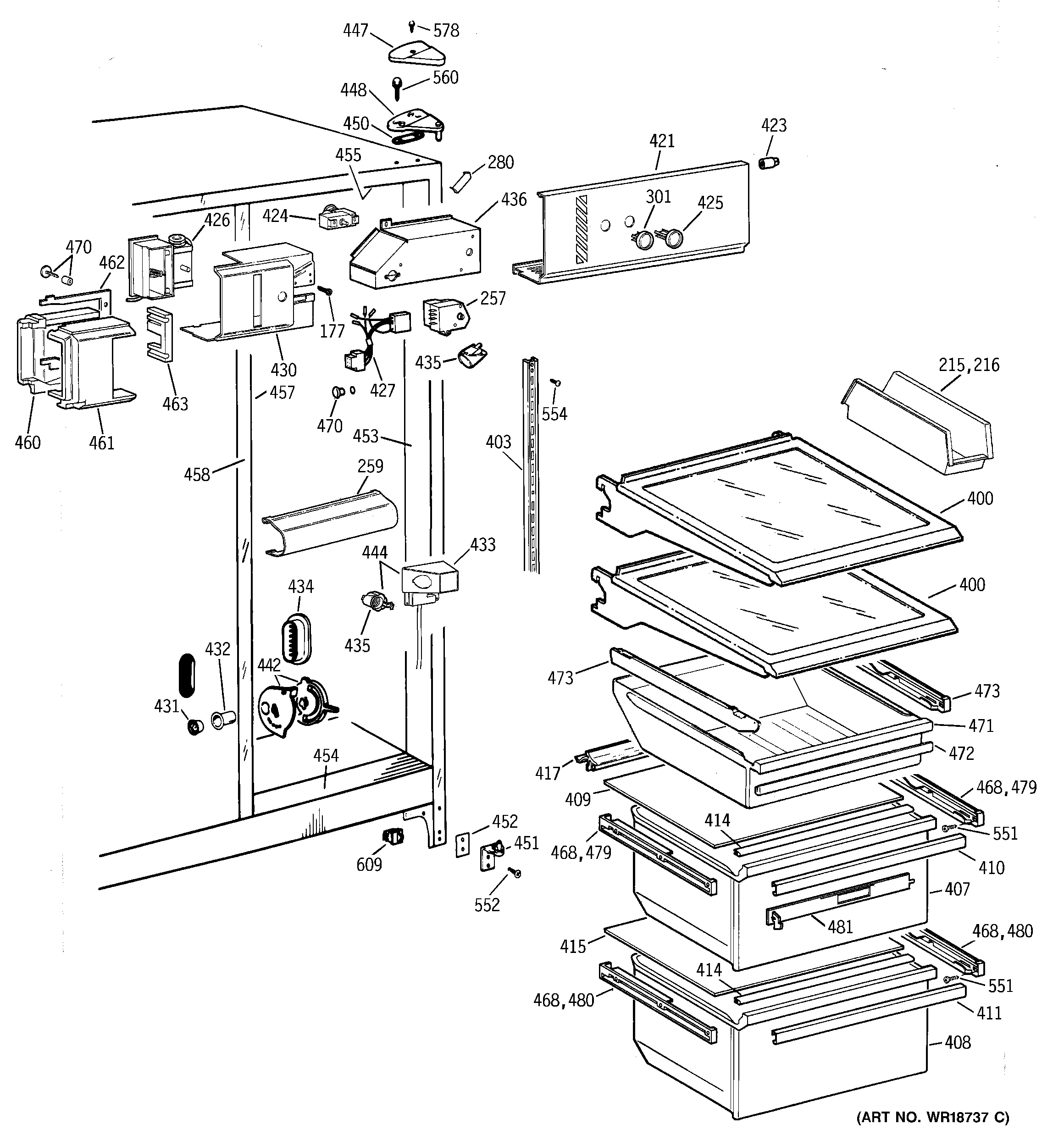 WR72X254 GE Refrigerator Side Track Assembly