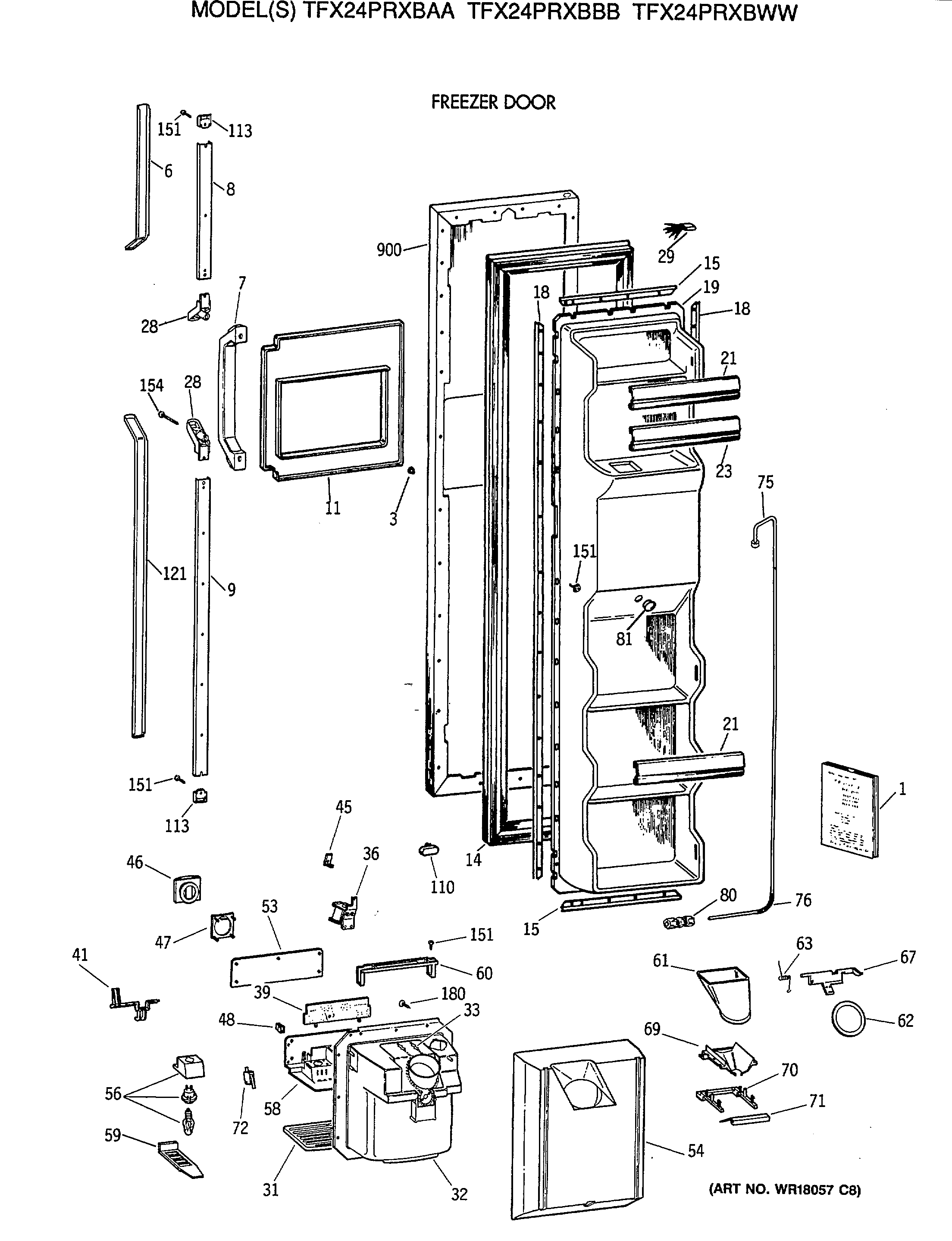 TFX24PRXBAA FREEZER DOOR