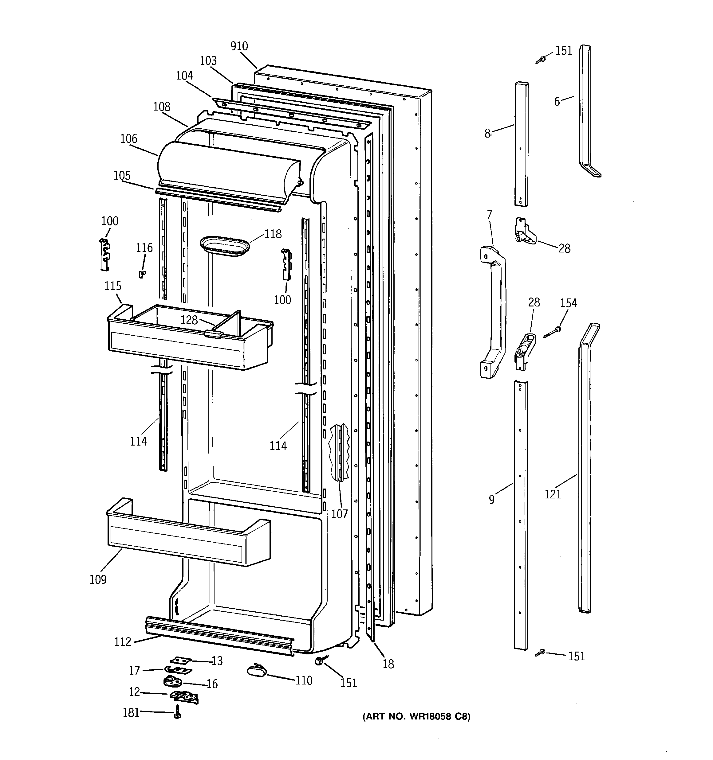 TFX25PRYFWW FRESH FOOD DOOR