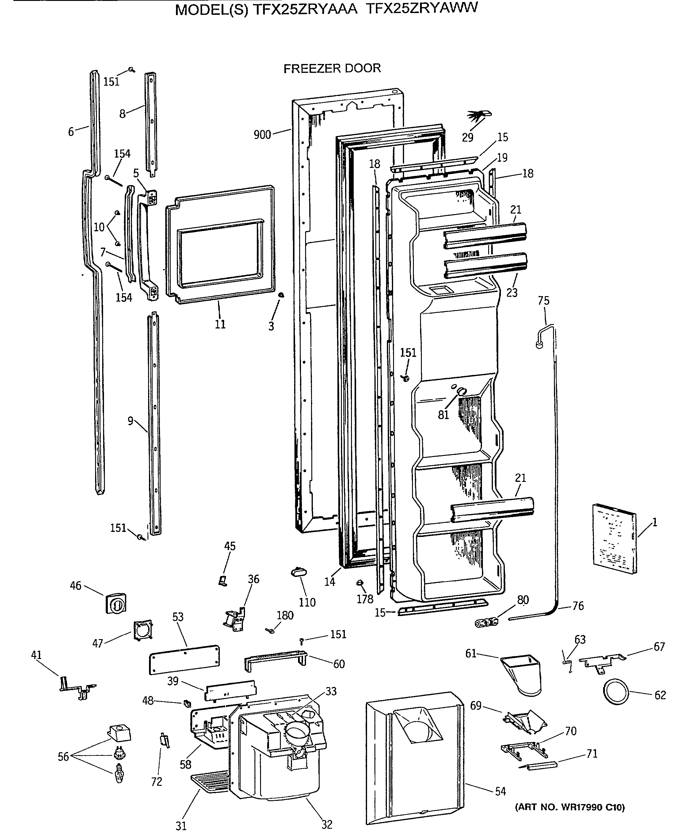 TFX25ZRYAWW FREEZER DOOR