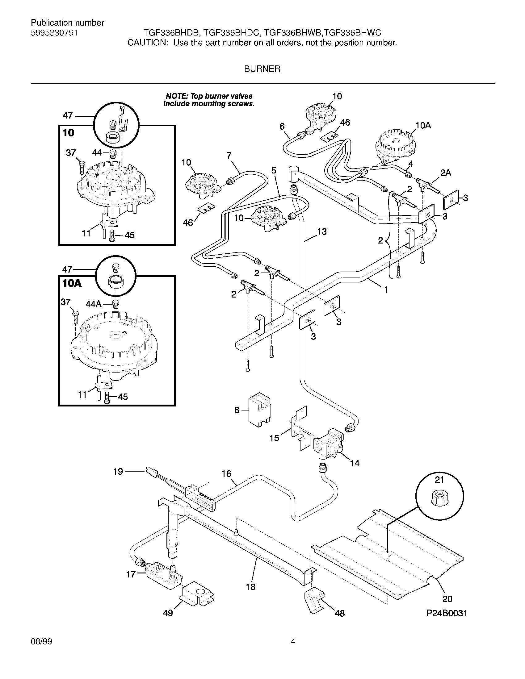 10BURNER ASSY-TOP, SEALED, (4), INCLUDES, 11, 37, 44, 45,