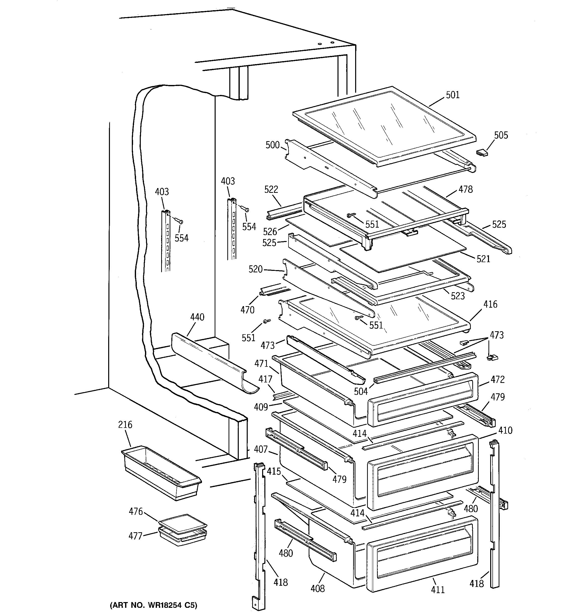 WR72X239 GE Refrigerator Left Hand Slide Assembly