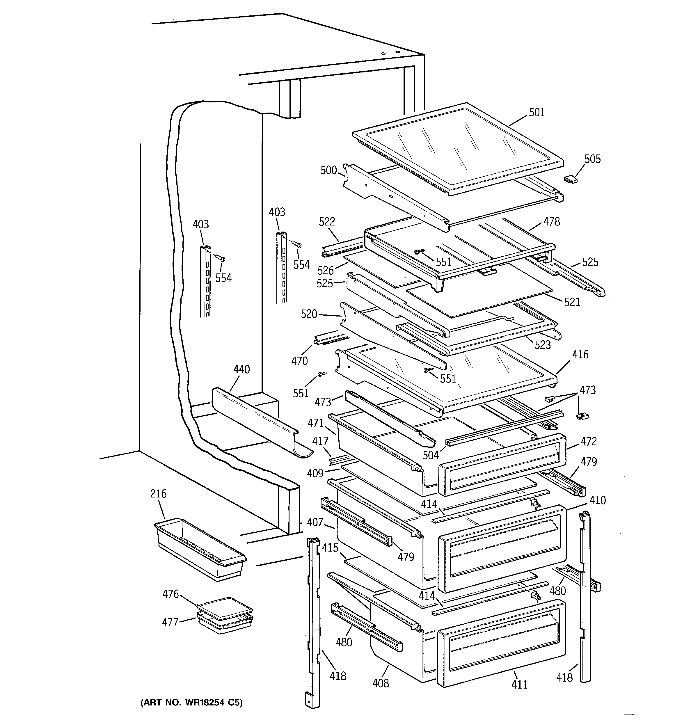 WR72X239 GE Refrigerator Left Hand Slide Assembly