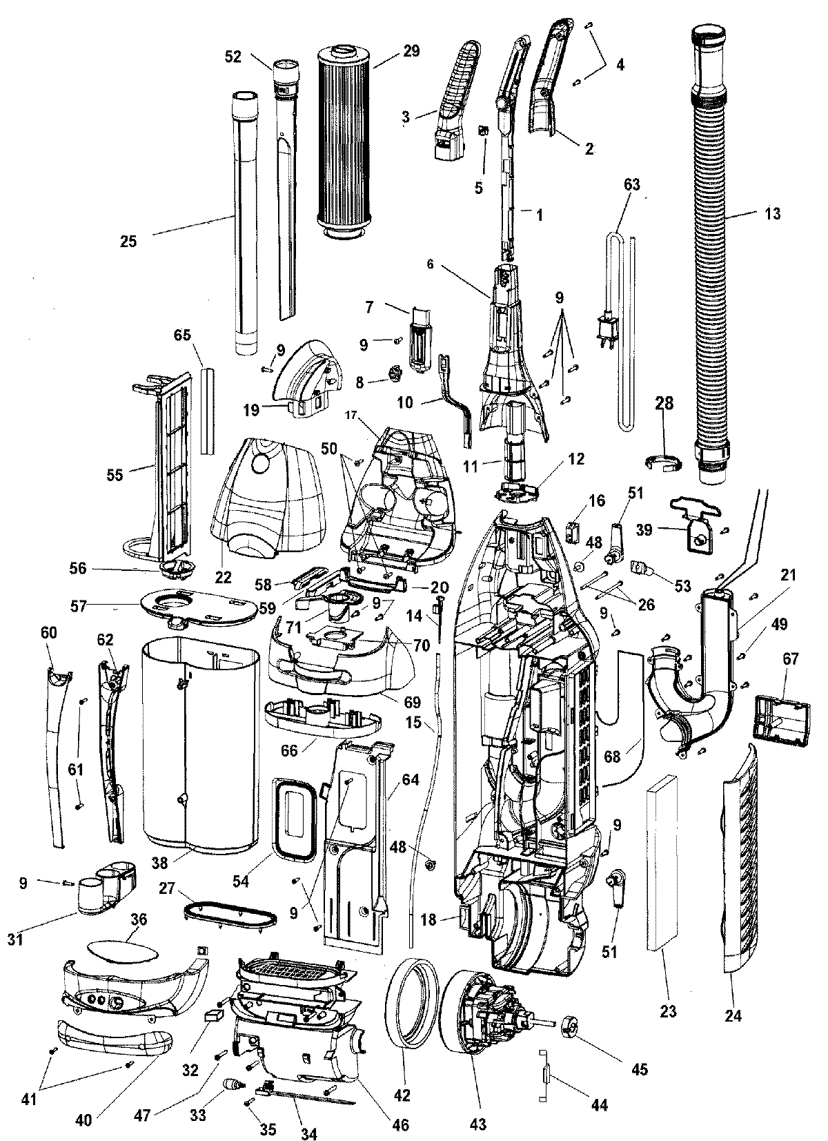 U6618900 02 – MOTOR, HANDLE, DIRT CUP, HOSE