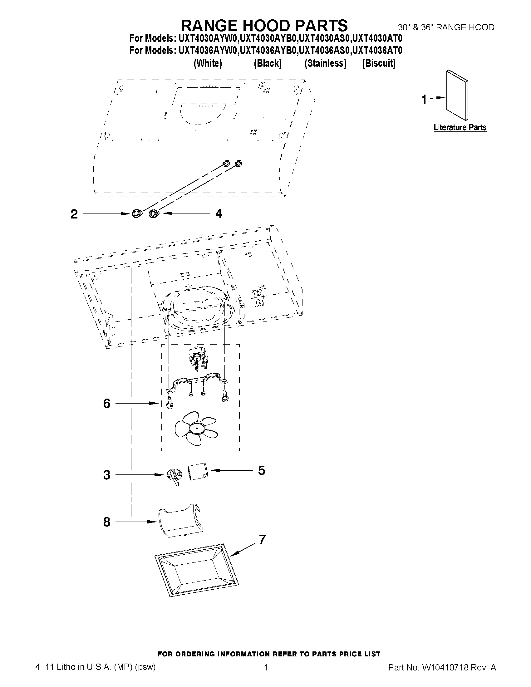 UXT4036AT0 01 – RANGE HOOD PARTS