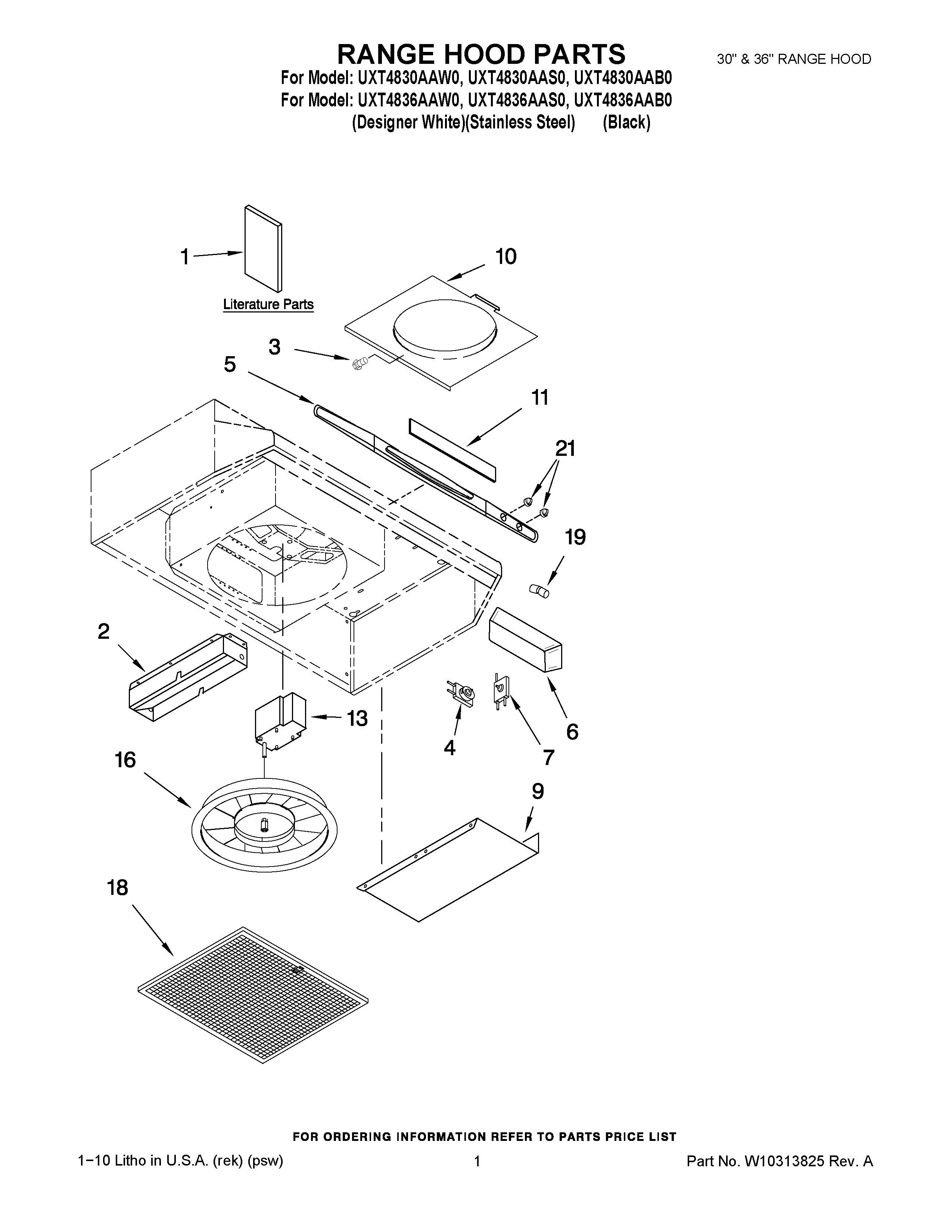 UXT4830AAS0 01 – RANGE HOOD PARTS