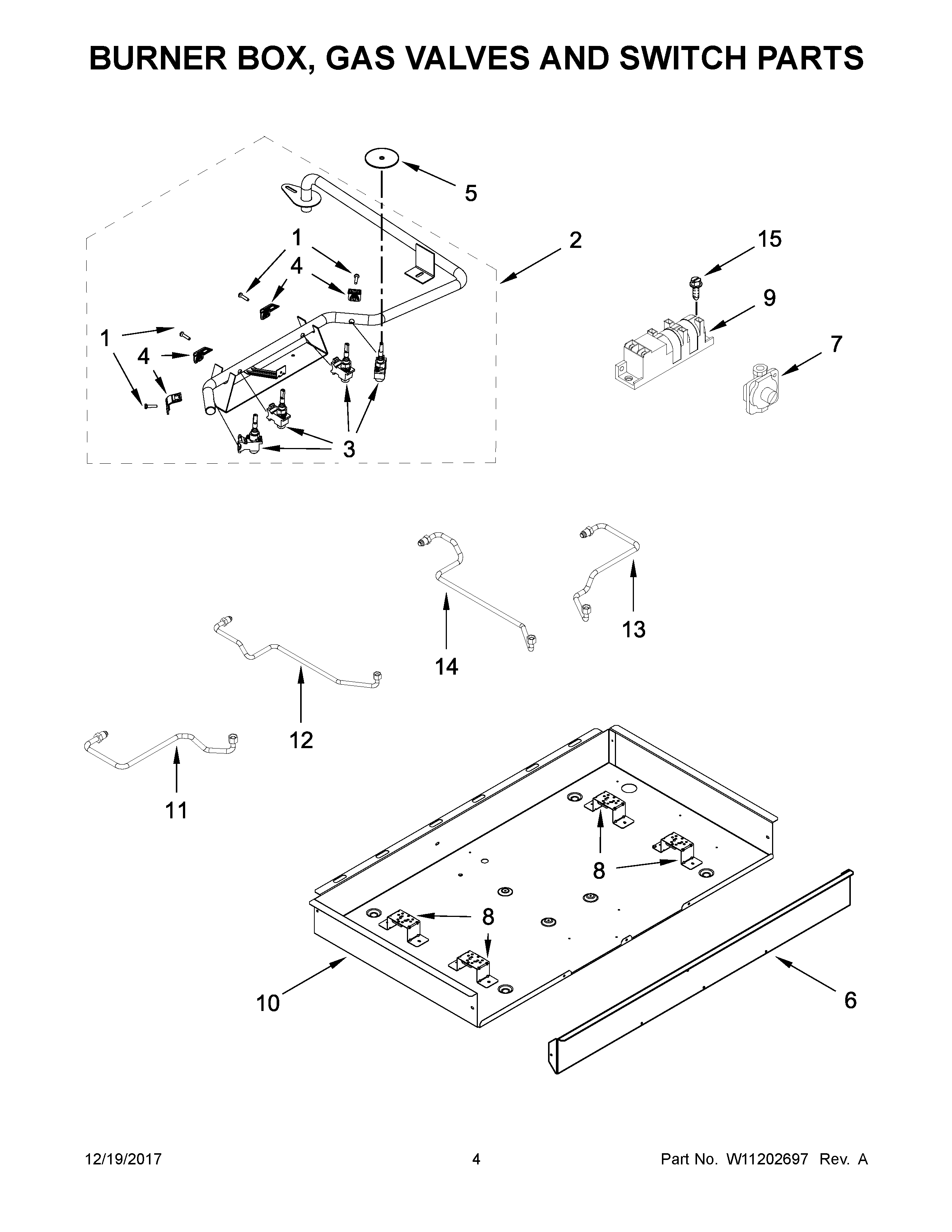 WCG55US0HB00 03 – BURNER BOX, GAS VALVES AND SWITCH PARTS