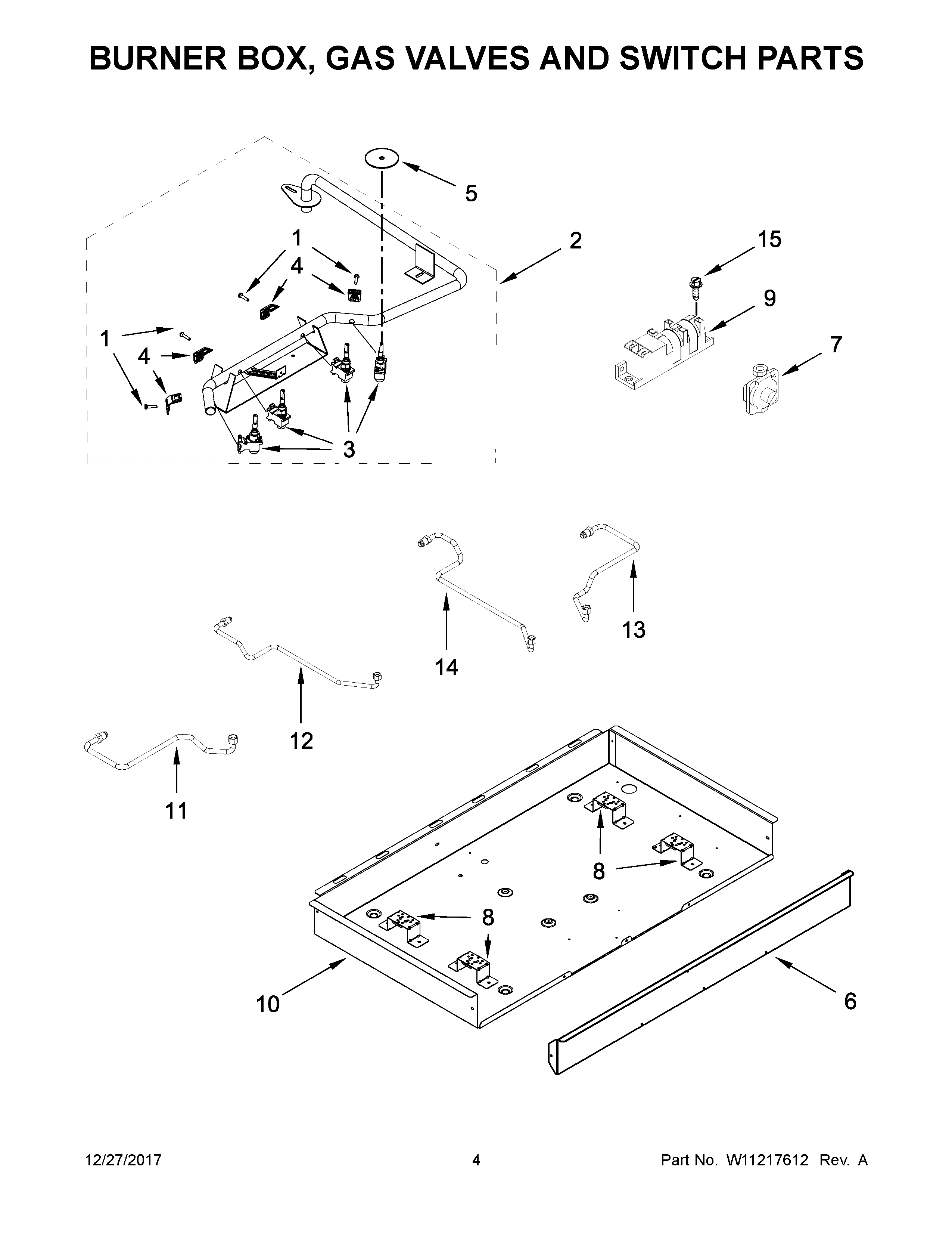 WCG55US0HS00 03 – BURNER BOX, GAS VALVES AND SWITCH PARTS