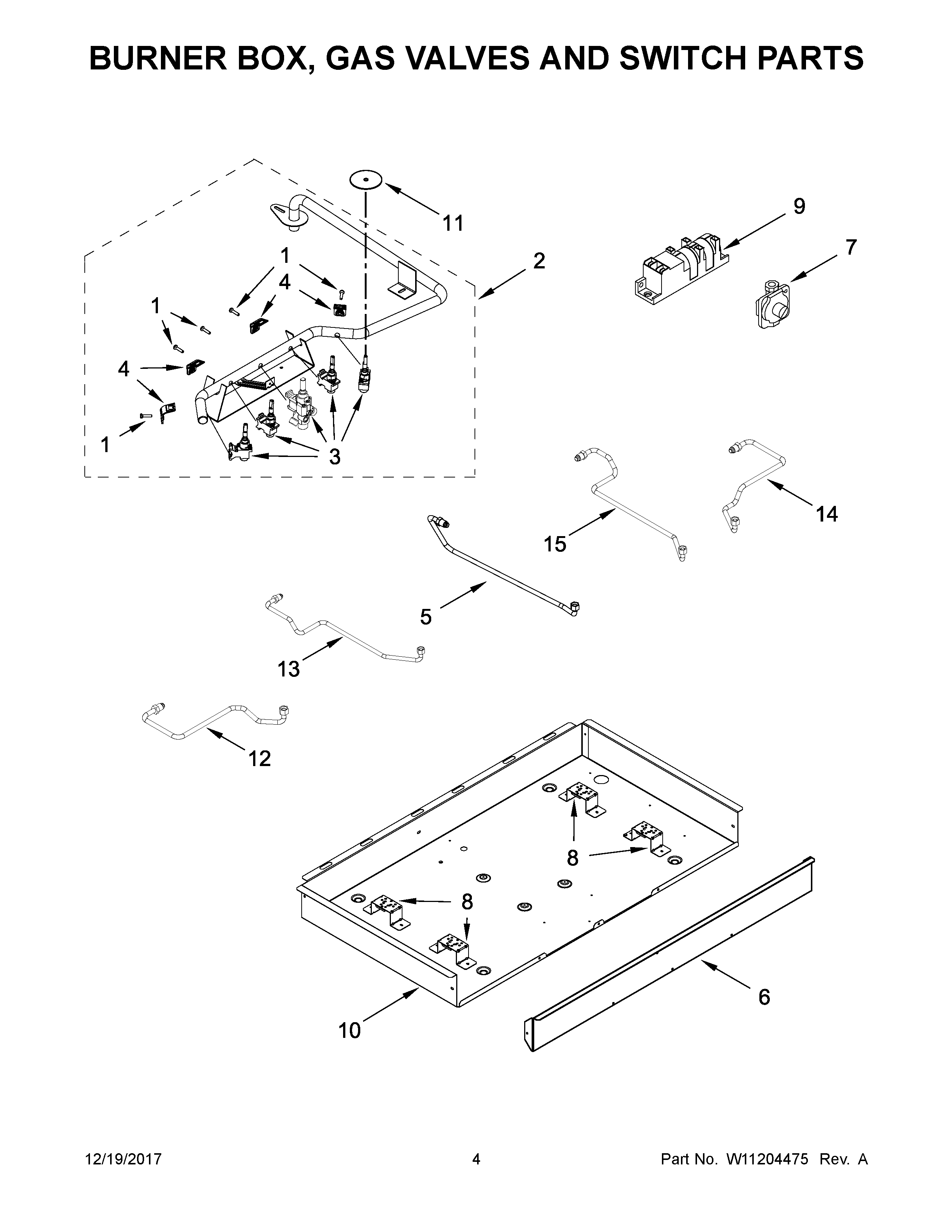 WCG77US0HS00 03 – BURNER BOX, GAS VALVES AND SWITCH PARTS