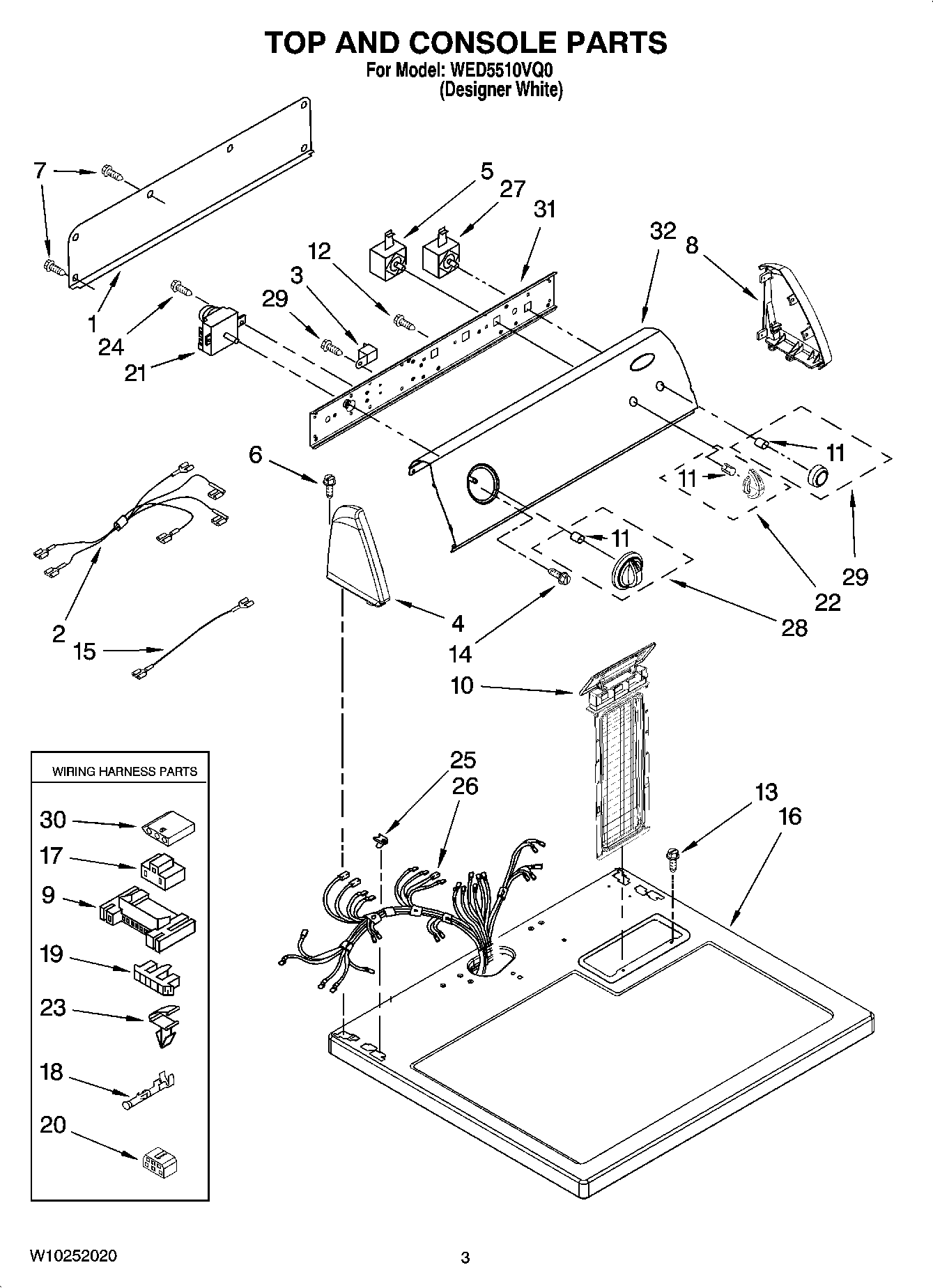 WED5510VQ0 02 – TOP AND CONSOLE PARTS