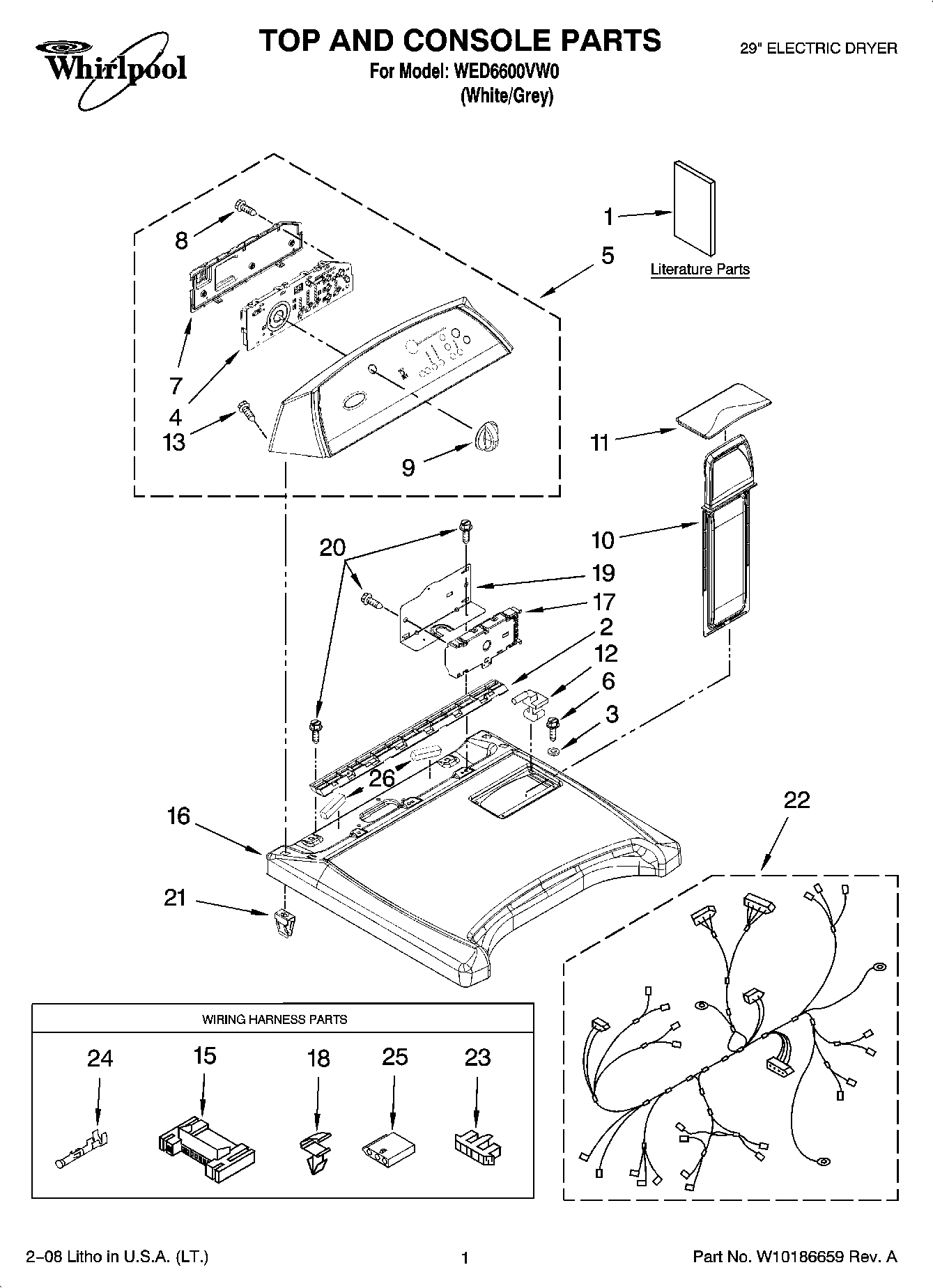 WED6600VW0 01 – TOP AND CONSOLE PARTS