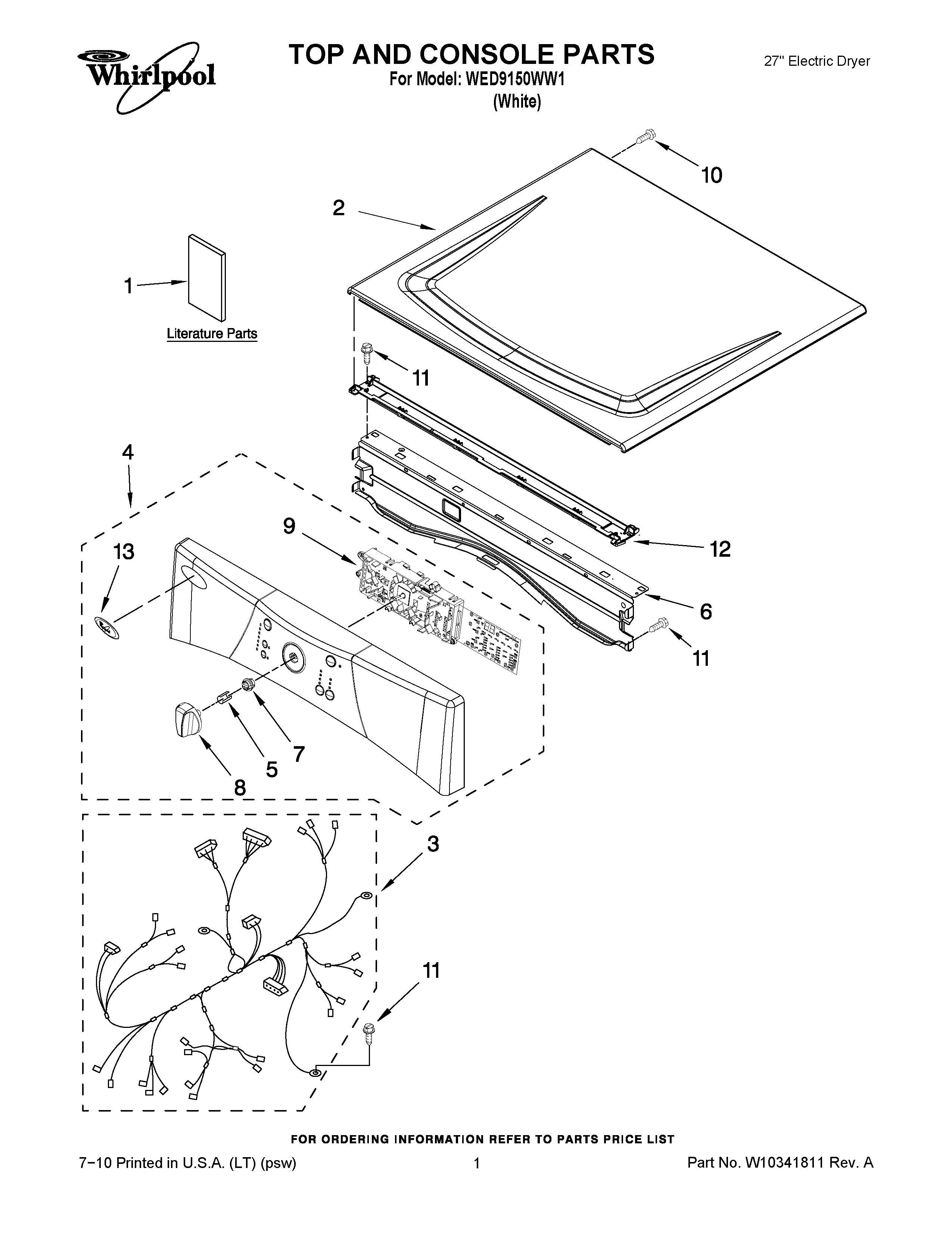 WED9150WW1 01 – TOP AND CONSOLE PARTS