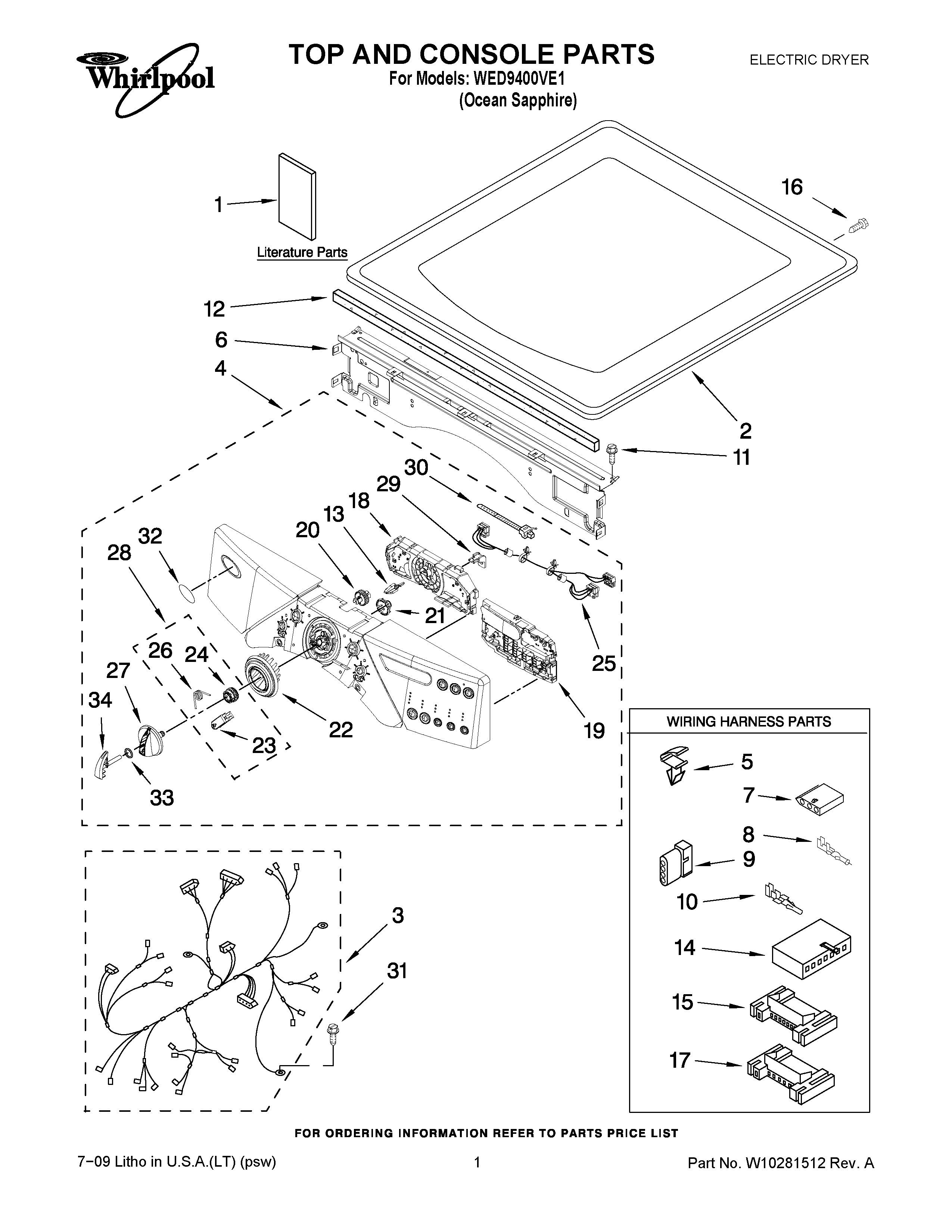WED9400VE1 01 – TOP AND CONSOLE PARTS