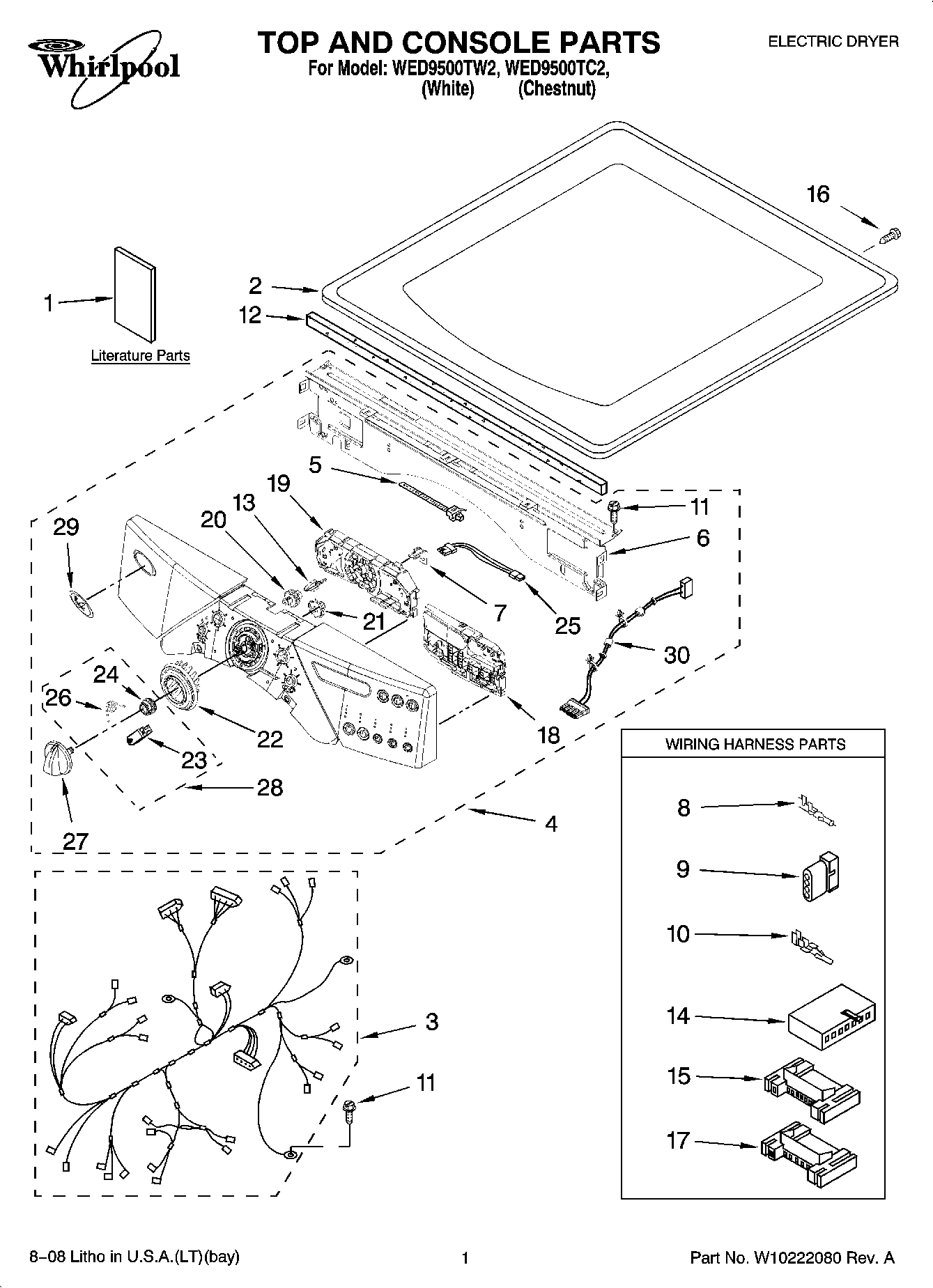 WED9500TC2 01 – TOP AND CONSOLE PARTS
