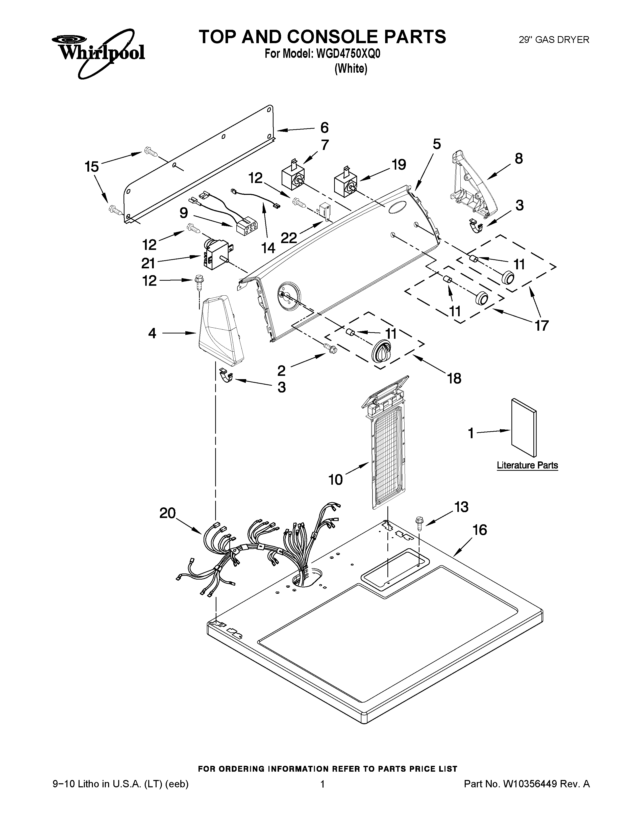 WGD4750XQ0 01 – TOP AND CONSOLE PARTS