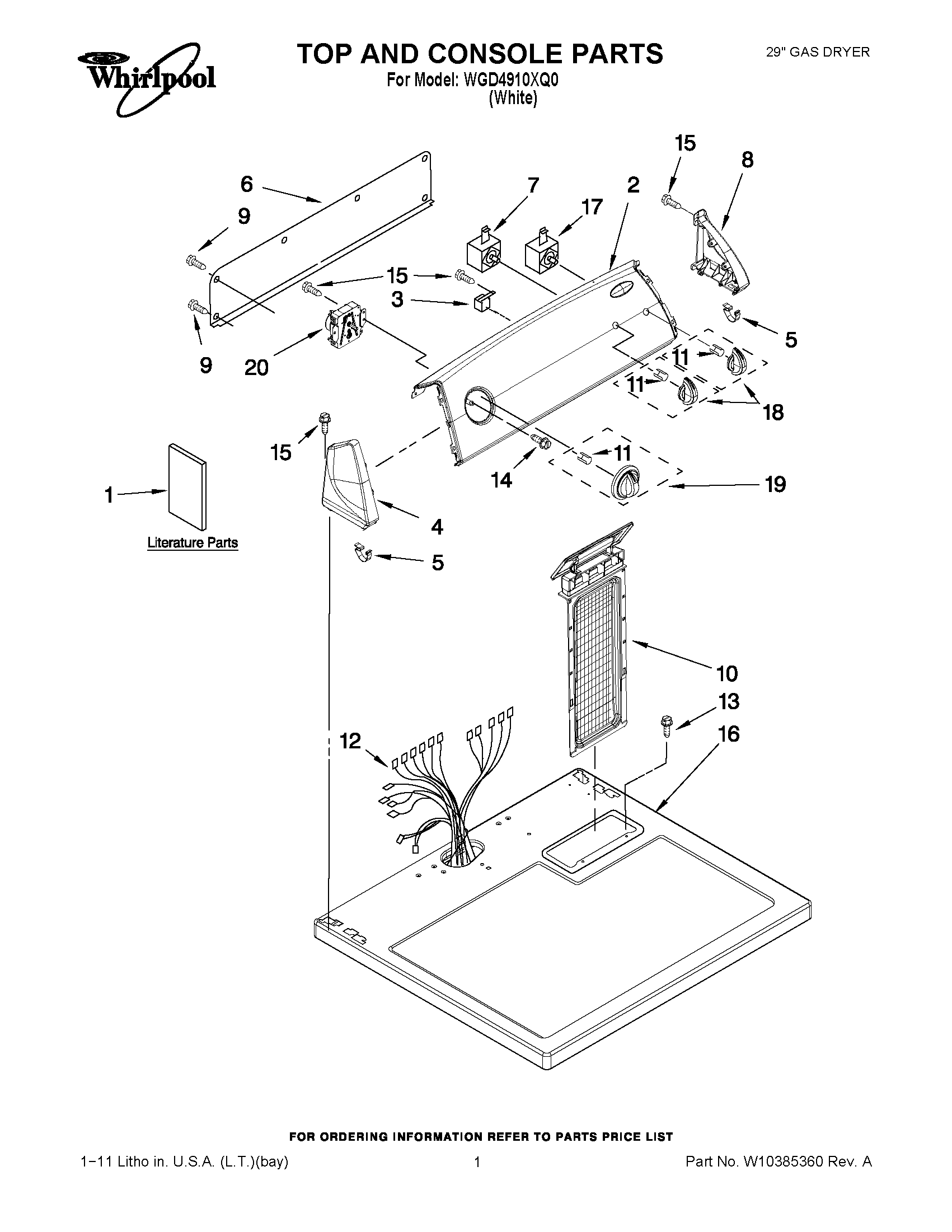 WGD4910XQ0 01 – TOP AND CONSOLE PARTS