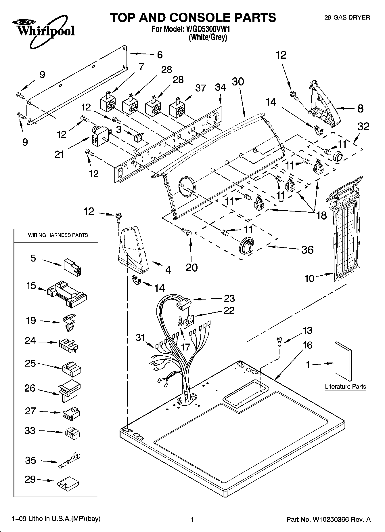 WGD5300VW1 01 – TOP AND CONSOLE PARTS