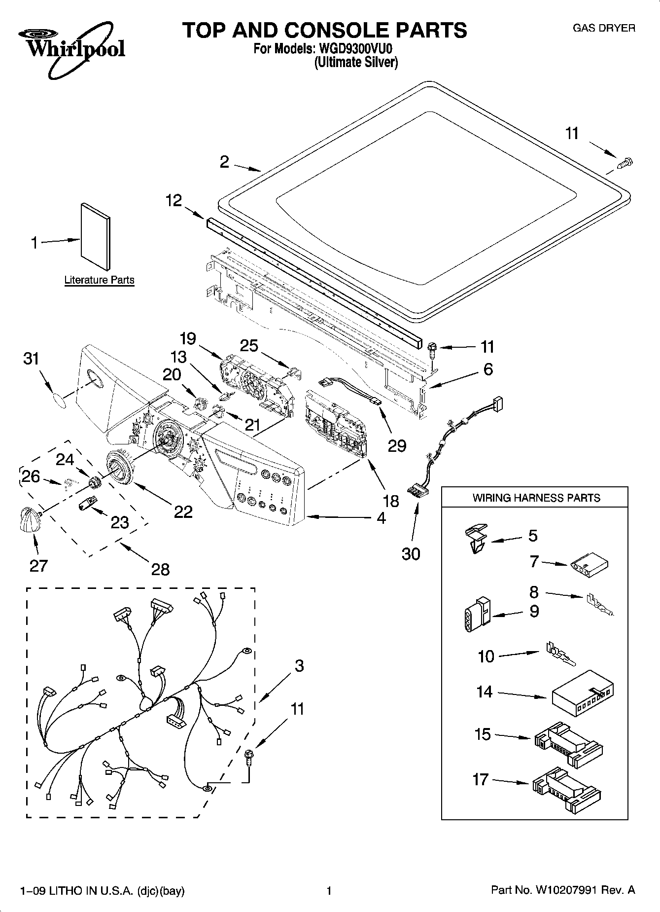 WGD9300VU0 01 – TOP AND CONSOLE PARTS
