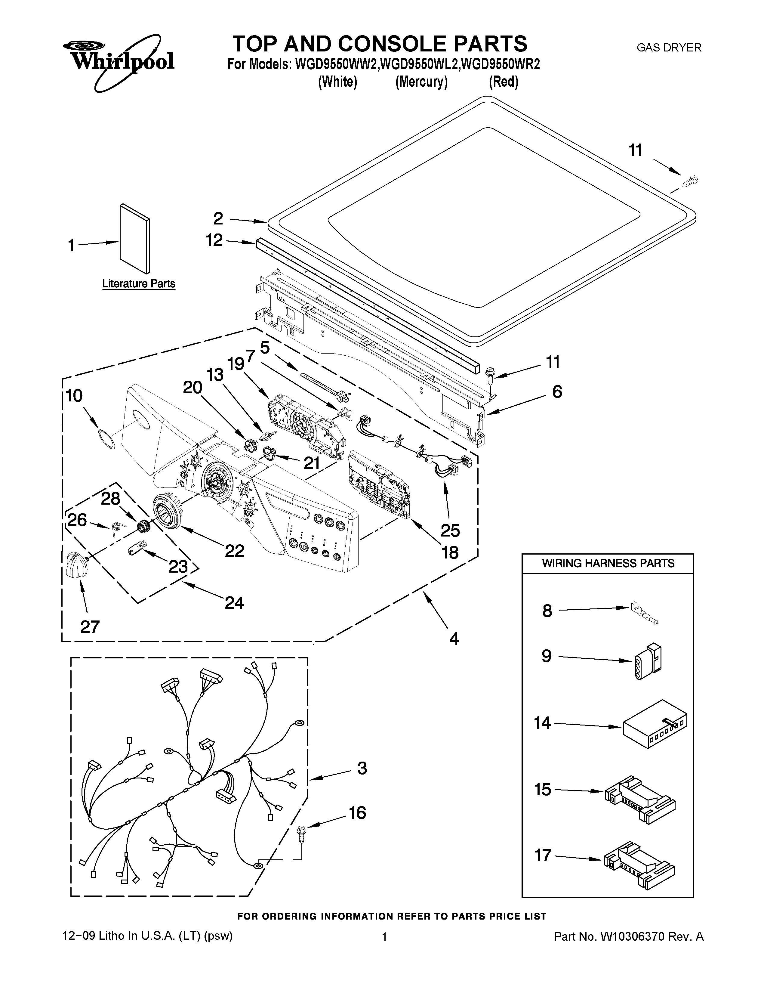 WGD9550WL2 01 – TOP AND CONSOLE PARTS